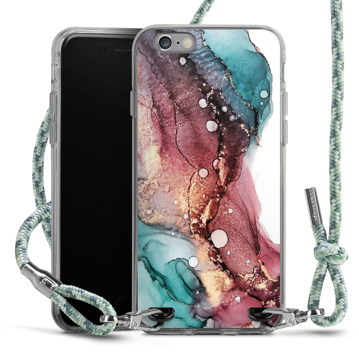 The flexible case is made from a highquality TPU material (thermoplastic Polyurethan). Thanks to its longlasting and break resistant characterisitcs, the case is flexible yet consistent in form and has a great grip and feel. The textile strap made from Polyester gives a chic yet casual accent allowing you to carry your phone like a bag or necklace - a practical gadget perfect for your next adventure. The textile strap is about 1.70 meters long and the length can easily be adjusted through the knots. Our Carry Case is available in Colourful, Mint-Camouflage, Very-Berry, Sahara-Sand and Sparkling-Neon. The ends of the textile strap are covered with metallic end caps to protect them against fraying.