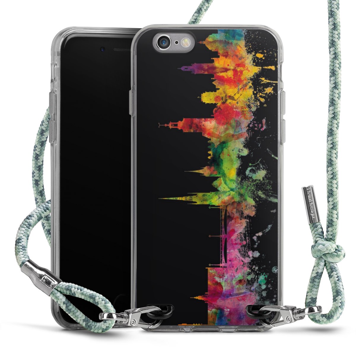 The flexible case is made from a highquality TPU material (thermoplastic Polyurethan). Thanks to its longlasting and break resistant characterisitcs, the case is flexible yet consistent in form and has a great grip and feel. The textile strap made from Polyester gives a chic yet casual accent allowing you to carry your phone like a bag or necklace - a practical gadget perfect for your next adventure. The textile strap is about 1.70 meters long and the length can easily be adjusted through the knots. Our Carry Case is available in Colourful, Mint-Camouflage, Very-Berry, Sahara-Sand and Sparkling-Neon. The ends of the textile strap are covered with metallic end caps to protect them against fraying.