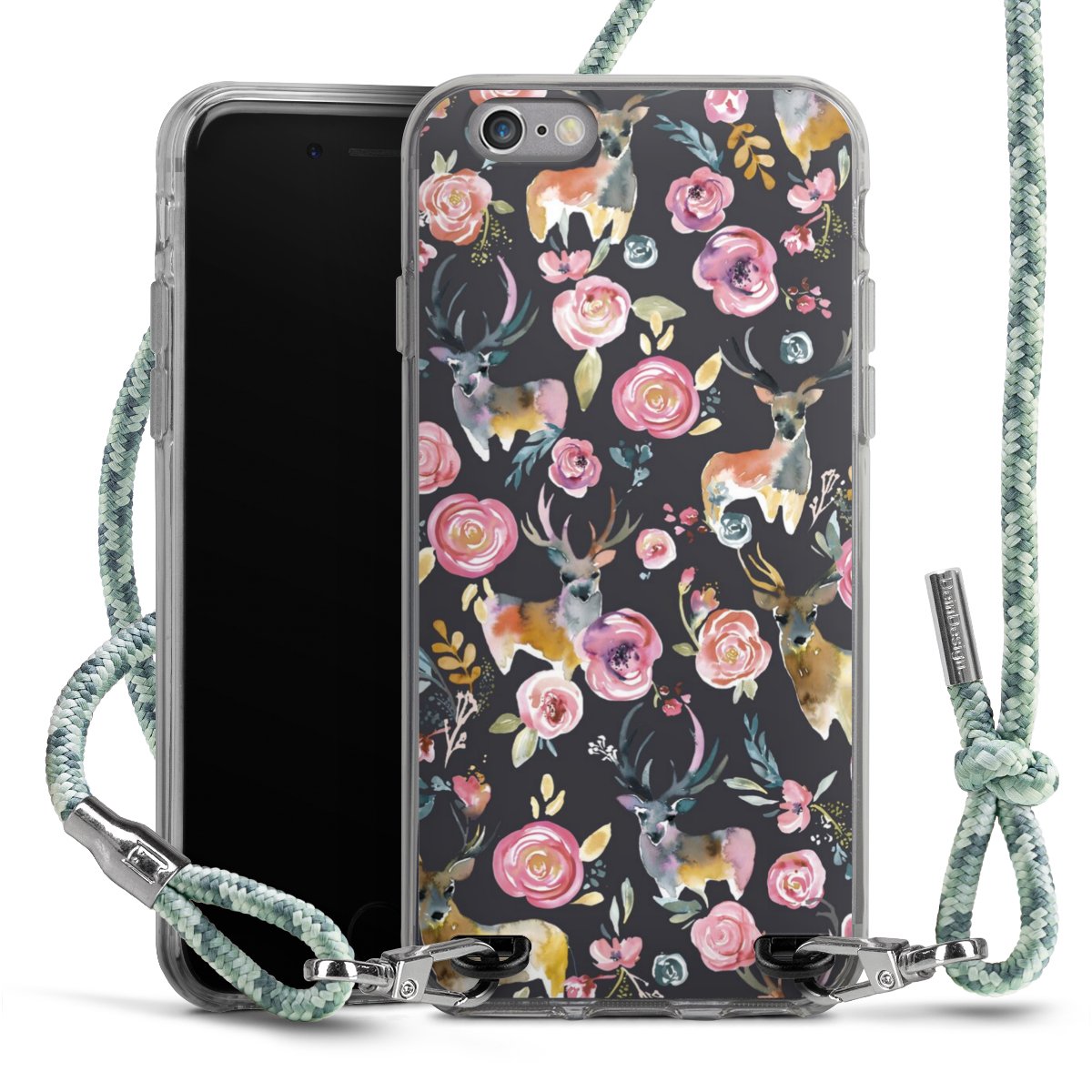 The flexible case is made from a highquality TPU material (thermoplastic Polyurethan). Thanks to its longlasting and break resistant characterisitcs, the case is flexible yet consistent in form and has a great grip and feel. The textile strap made from Polyester gives a chic yet casual accent allowing you to carry your phone like a bag or necklace - a practical gadget perfect for your next adventure. The textile strap is about 1.70 meters long and the length can easily be adjusted through the knots. Our Carry Case is available in Colourful, Mint-Camouflage, Very-Berry, Sahara-Sand and Sparkling-Neon. The ends of the textile strap are covered with metallic end caps to protect them against fraying.
