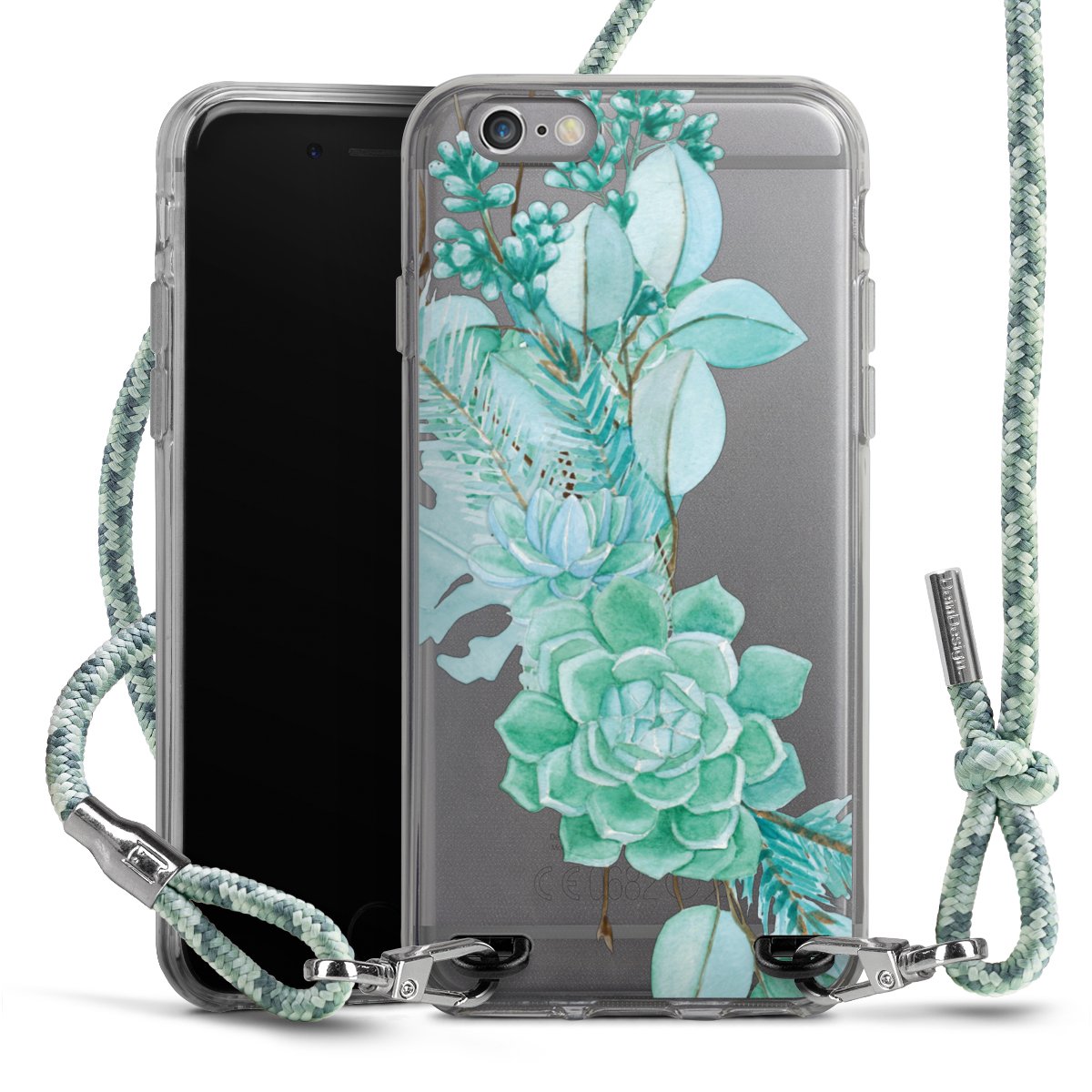 The flexible case is made from a highquality TPU material (thermoplastic Polyurethan). Thanks to its longlasting and break resistant characterisitcs, the case is flexible yet consistent in form and has a great grip and feel. The textile strap made from Polyester gives a chic yet casual accent allowing you to carry your phone like a bag or necklace - a practical gadget perfect for your next adventure. The textile strap is about 1.70 meters long and the length can easily be adjusted through the knots. Our Carry Case is available in Colourful, Mint-Camouflage, Very-Berry, Sahara-Sand and Sparkling-Neon. The ends of the textile strap are covered with metallic end caps to protect them against fraying.