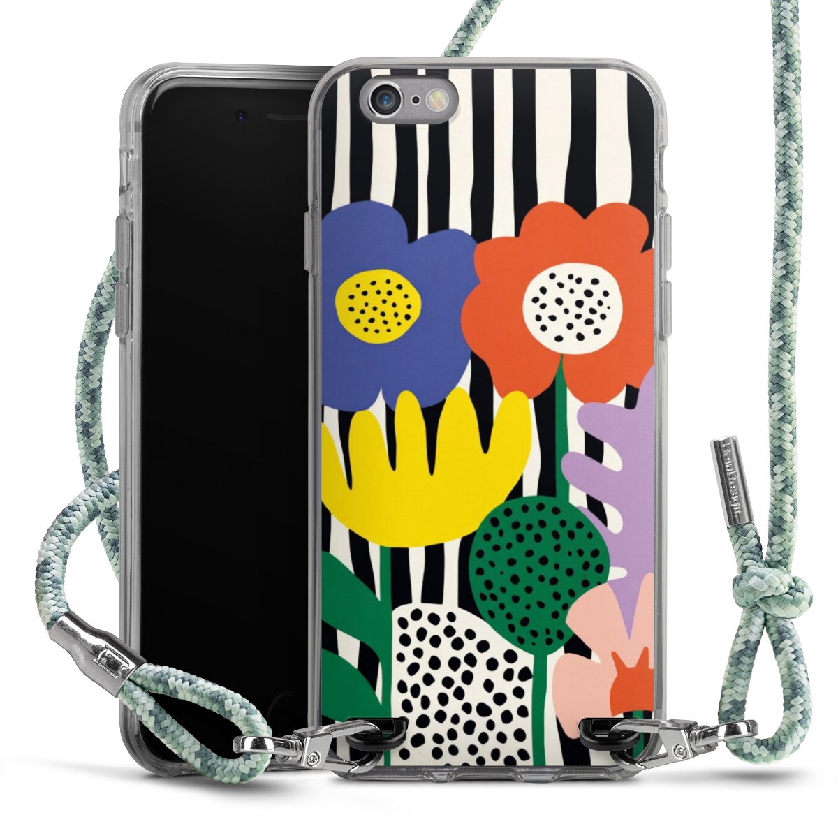 The flexible case is made from a highquality TPU material (thermoplastic Polyurethan). Thanks to its longlasting and break resistant characterisitcs, the case is flexible yet consistent in form and has a great grip and feel. The textile strap made from Polyester gives a chic yet casual accent allowing you to carry your phone like a bag or necklace - a practical gadget perfect for your next adventure. The textile strap is about 1.70 meters long and the length can easily be adjusted through the knots. Our Carry Case is available in Colourful, Mint-Camouflage, Very-Berry, Sahara-Sand and Sparkling-Neon. The ends of the textile strap are covered with metallic end caps to protect them against fraying.