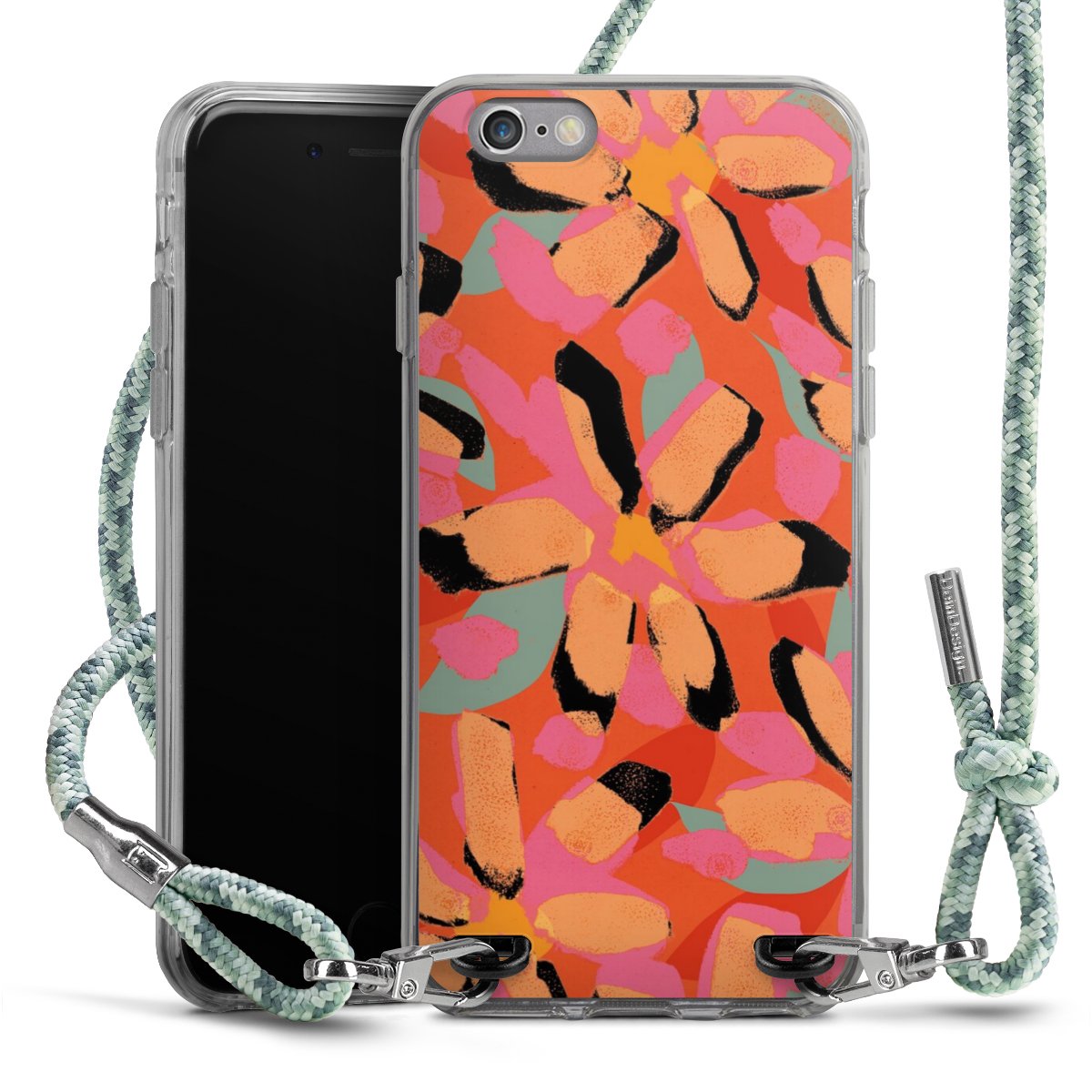 The flexible case is made from a highquality TPU material (thermoplastic Polyurethan). Thanks to its longlasting and break resistant characterisitcs, the case is flexible yet consistent in form and has a great grip and feel. The textile strap made from Polyester gives a chic yet casual accent allowing you to carry your phone like a bag or necklace - a practical gadget perfect for your next adventure. The textile strap is about 1.70 meters long and the length can easily be adjusted through the knots. Our Carry Case is available in Colourful, Mint-Camouflage, Very-Berry, Sahara-Sand and Sparkling-Neon. The ends of the textile strap are covered with metallic end caps to protect them against fraying.