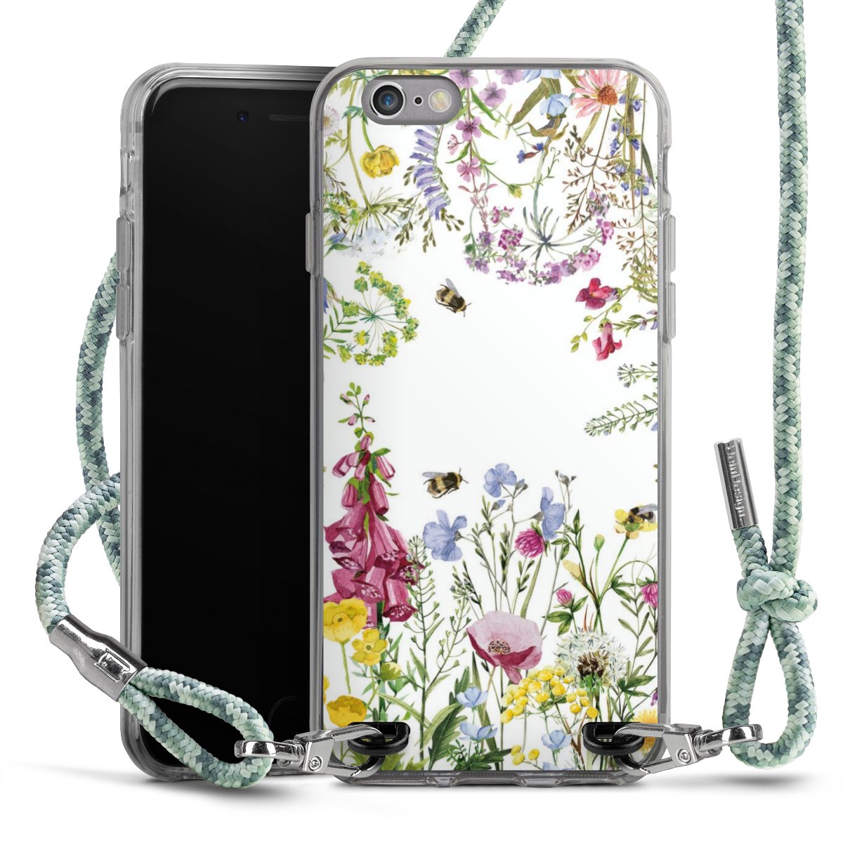 The flexible case is made from a highquality TPU material (thermoplastic Polyurethan). Thanks to its longlasting and break resistant characterisitcs, the case is flexible yet consistent in form and has a great grip and feel. The textile strap made from Polyester gives a chic yet casual accent allowing you to carry your phone like a bag or necklace - a practical gadget perfect for your next adventure. The textile strap is about 1.70 meters long and the length can easily be adjusted through the knots. Our Carry Case is available in Colourful, Mint-Camouflage, Very-Berry, Sahara-Sand and Sparkling-Neon. The ends of the textile strap are covered with metallic end caps to protect them against fraying.