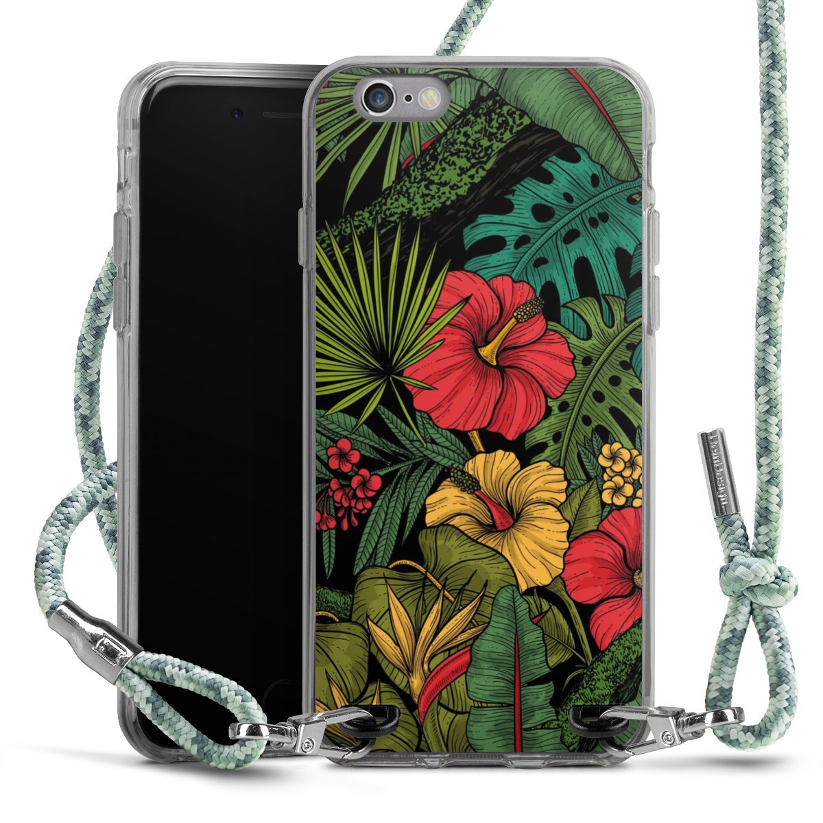 The flexible case is made from a highquality TPU material (thermoplastic Polyurethan). Thanks to its longlasting and break resistant characterisitcs, the case is flexible yet consistent in form and has a great grip and feel. The textile strap made from Polyester gives a chic yet casual accent allowing you to carry your phone like a bag or necklace - a practical gadget perfect for your next adventure. The textile strap is about 1.70 meters long and the length can easily be adjusted through the knots. Our Carry Case is available in Colourful, Mint-Camouflage, Very-Berry, Sahara-Sand and Sparkling-Neon. The ends of the textile strap are covered with metallic end caps to protect them against fraying.