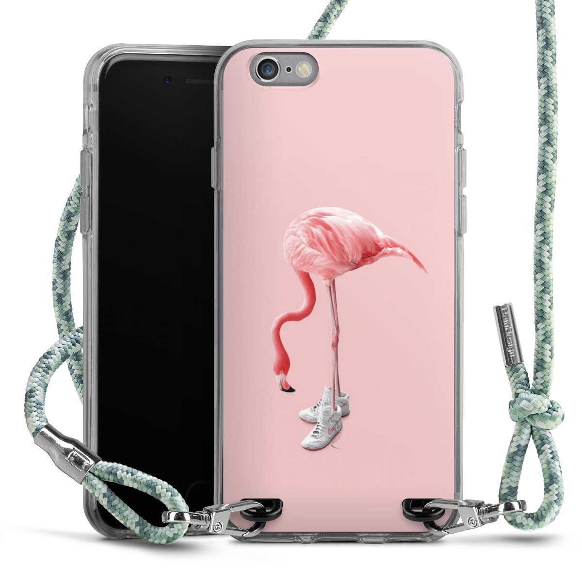The flexible case is made from a highquality TPU material (thermoplastic Polyurethan). Thanks to its longlasting and break resistant characterisitcs, the case is flexible yet consistent in form and has a great grip and feel. The textile strap made from Polyester gives a chic yet casual accent allowing you to carry your phone like a bag or necklace - a practical gadget perfect for your next adventure. The textile strap is about 1.70 meters long and the length can easily be adjusted through the knots. Our Carry Case is available in Colourful, Mint-Camouflage, Very-Berry, Sahara-Sand and Sparkling-Neon. The ends of the textile strap are covered with metallic end caps to protect them against fraying.