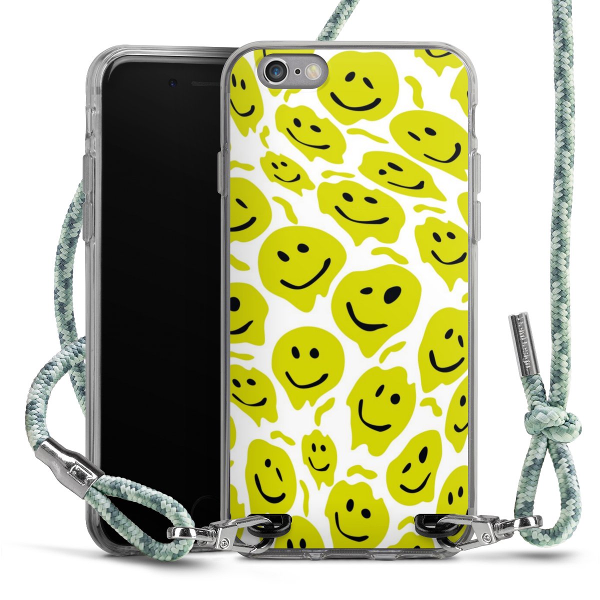 The flexible case is made from a highquality TPU material (thermoplastic Polyurethan). Thanks to its longlasting and break resistant characterisitcs, the case is flexible yet consistent in form and has a great grip and feel. The textile strap made from Polyester gives a chic yet casual accent allowing you to carry your phone like a bag or necklace - a practical gadget perfect for your next adventure. The textile strap is about 1.70 meters long and the length can easily be adjusted through the knots. Our Carry Case is available in Colourful, Mint-Camouflage, Very-Berry, Sahara-Sand and Sparkling-Neon. The ends of the textile strap are covered with metallic end caps to protect them against fraying.