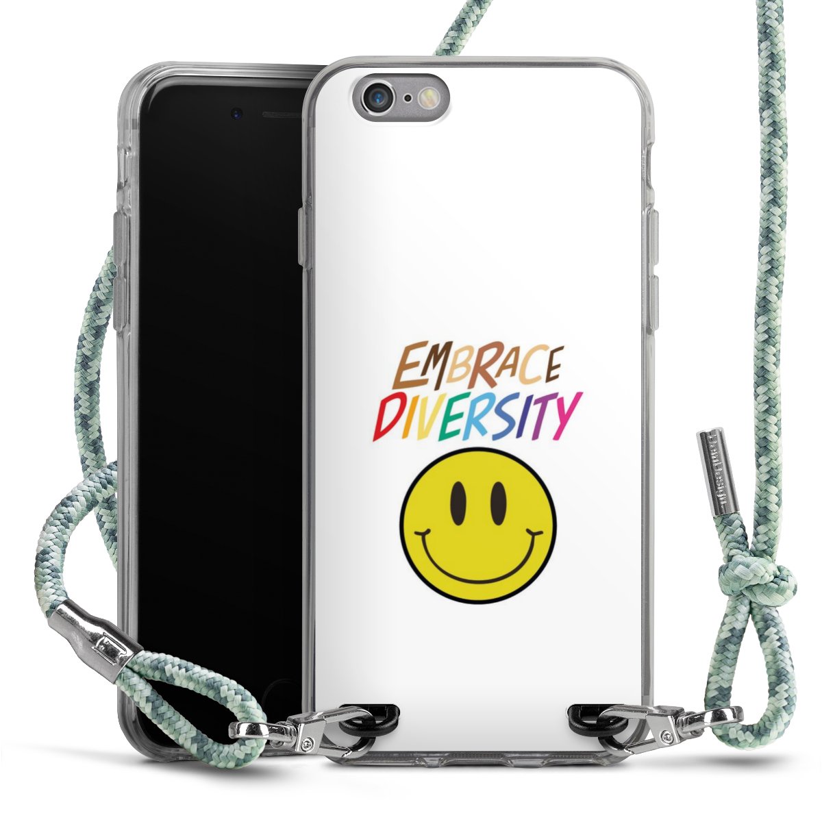 The flexible case is made from a highquality TPU material (thermoplastic Polyurethan). Thanks to its longlasting and break resistant characterisitcs, the case is flexible yet consistent in form and has a great grip and feel. The textile strap made from Polyester gives a chic yet casual accent allowing you to carry your phone like a bag or necklace - a practical gadget perfect for your next adventure. The textile strap is about 1.70 meters long and the length can easily be adjusted through the knots. Our Carry Case is available in Colourful, Mint-Camouflage, Very-Berry, Sahara-Sand and Sparkling-Neon. The ends of the textile strap are covered with metallic end caps to protect them against fraying.