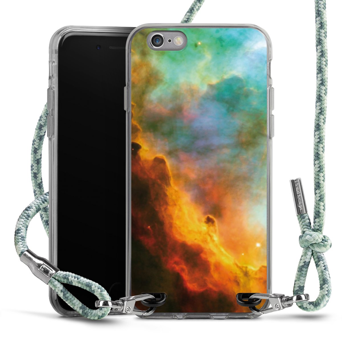 The flexible case is made from a highquality TPU material (thermoplastic Polyurethan). Thanks to its longlasting and break resistant characterisitcs, the case is flexible yet consistent in form and has a great grip and feel. The textile strap made from Polyester gives a chic yet casual accent allowing you to carry your phone like a bag or necklace - a practical gadget perfect for your next adventure. The textile strap is about 1.70 meters long and the length can easily be adjusted through the knots. Our Carry Case is available in Colourful, Mint-Camouflage, Very-Berry, Sahara-Sand and Sparkling-Neon. The ends of the textile strap are covered with metallic end caps to protect them against fraying.