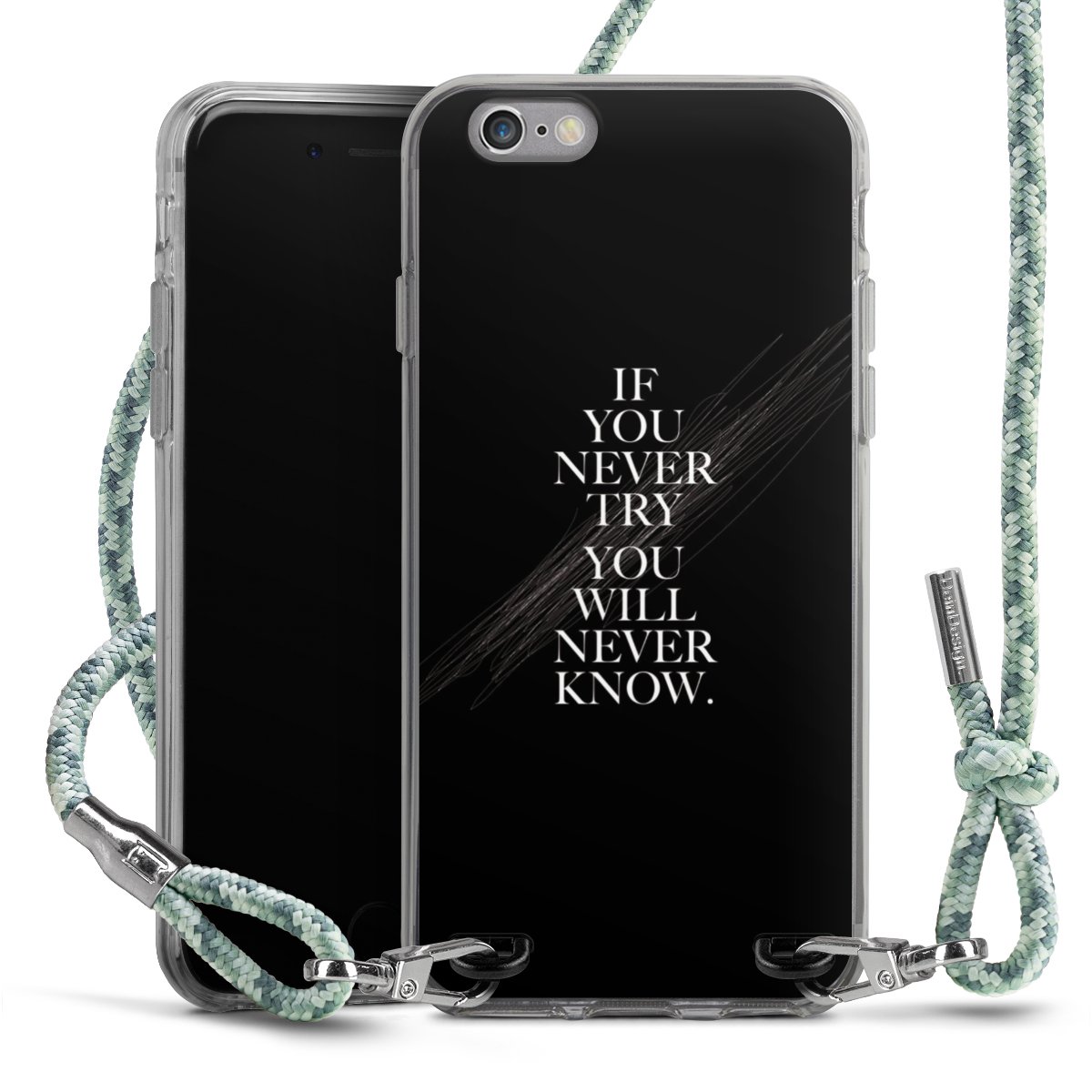 The flexible case is made from a highquality TPU material (thermoplastic Polyurethan). Thanks to its longlasting and break resistant characterisitcs, the case is flexible yet consistent in form and has a great grip and feel. The textile strap made from Polyester gives a chic yet casual accent allowing you to carry your phone like a bag or necklace - a practical gadget perfect for your next adventure. The textile strap is about 1.70 meters long and the length can easily be adjusted through the knots. Our Carry Case is available in Colourful, Mint-Camouflage, Very-Berry, Sahara-Sand and Sparkling-Neon. The ends of the textile strap are covered with metallic end caps to protect them against fraying.