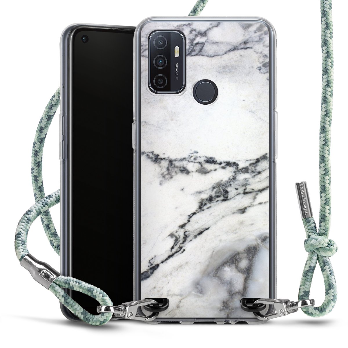The flexible case is made from a highquality TPU material (thermoplastic Polyurethan). Thanks to its longlasting and break resistant characterisitcs, the case is flexible yet consistent in form and has a great grip and feel. The textile strap made from Polyester gives a chic yet casual accent allowing you to carry your phone like a bag or necklace - a practical gadget perfect for your next adventure. The textile strap is about 1.70 meters long and the length can easily be adjusted through the knots. Our Carry Case is available in Colourful, Mint-Camouflage, Very-Berry, Sahara-Sand and Sparkling-Neon. The ends of the textile strap are covered with metallic end caps to protect them against fraying.