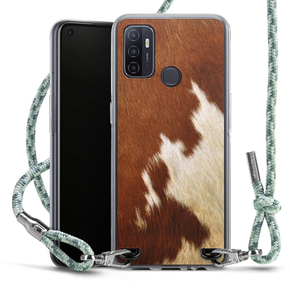 The flexible case is made from a highquality TPU material (thermoplastic Polyurethan). Thanks to its longlasting and break resistant characterisitcs, the case is flexible yet consistent in form and has a great grip and feel. The textile strap made from Polyester gives a chic yet casual accent allowing you to carry your phone like a bag or necklace - a practical gadget perfect for your next adventure. The textile strap is about 1.70 meters long and the length can easily be adjusted through the knots. Our Carry Case is available in Colourful, Mint-Camouflage, Very-Berry, Sahara-Sand and Sparkling-Neon. The ends of the textile strap are covered with metallic end caps to protect them against fraying.