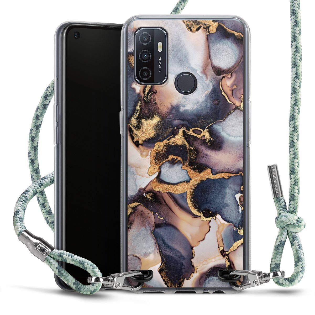 The flexible case is made from a highquality TPU material (thermoplastic Polyurethan). Thanks to its longlasting and break resistant characterisitcs, the case is flexible yet consistent in form and has a great grip and feel. The textile strap made from Polyester gives a chic yet casual accent allowing you to carry your phone like a bag or necklace - a practical gadget perfect for your next adventure. The textile strap is about 1.70 meters long and the length can easily be adjusted through the knots. Our Carry Case is available in Colourful, Mint-Camouflage, Very-Berry, Sahara-Sand and Sparkling-Neon. The ends of the textile strap are covered with metallic end caps to protect them against fraying.