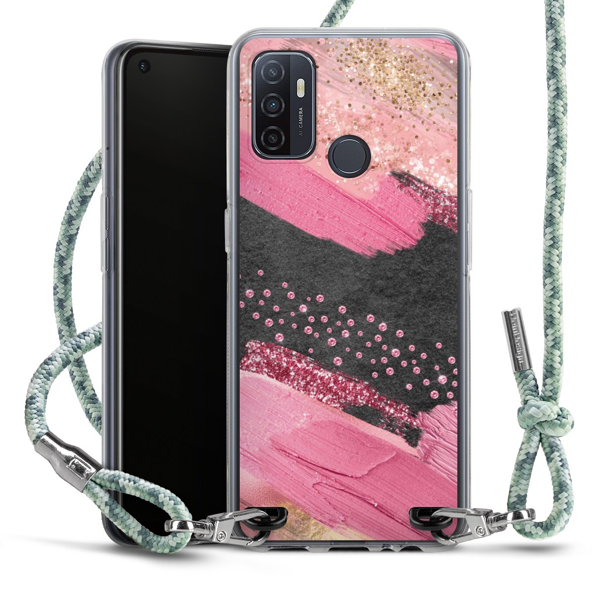 The flexible case is made from a highquality TPU material (thermoplastic Polyurethan). Thanks to its longlasting and break resistant characterisitcs, the case is flexible yet consistent in form and has a great grip and feel. The textile strap made from Polyester gives a chic yet casual accent allowing you to carry your phone like a bag or necklace - a practical gadget perfect for your next adventure. The textile strap is about 1.70 meters long and the length can easily be adjusted through the knots. Our Carry Case is available in Colourful, Mint-Camouflage, Very-Berry, Sahara-Sand and Sparkling-Neon. The ends of the textile strap are covered with metallic end caps to protect them against fraying.