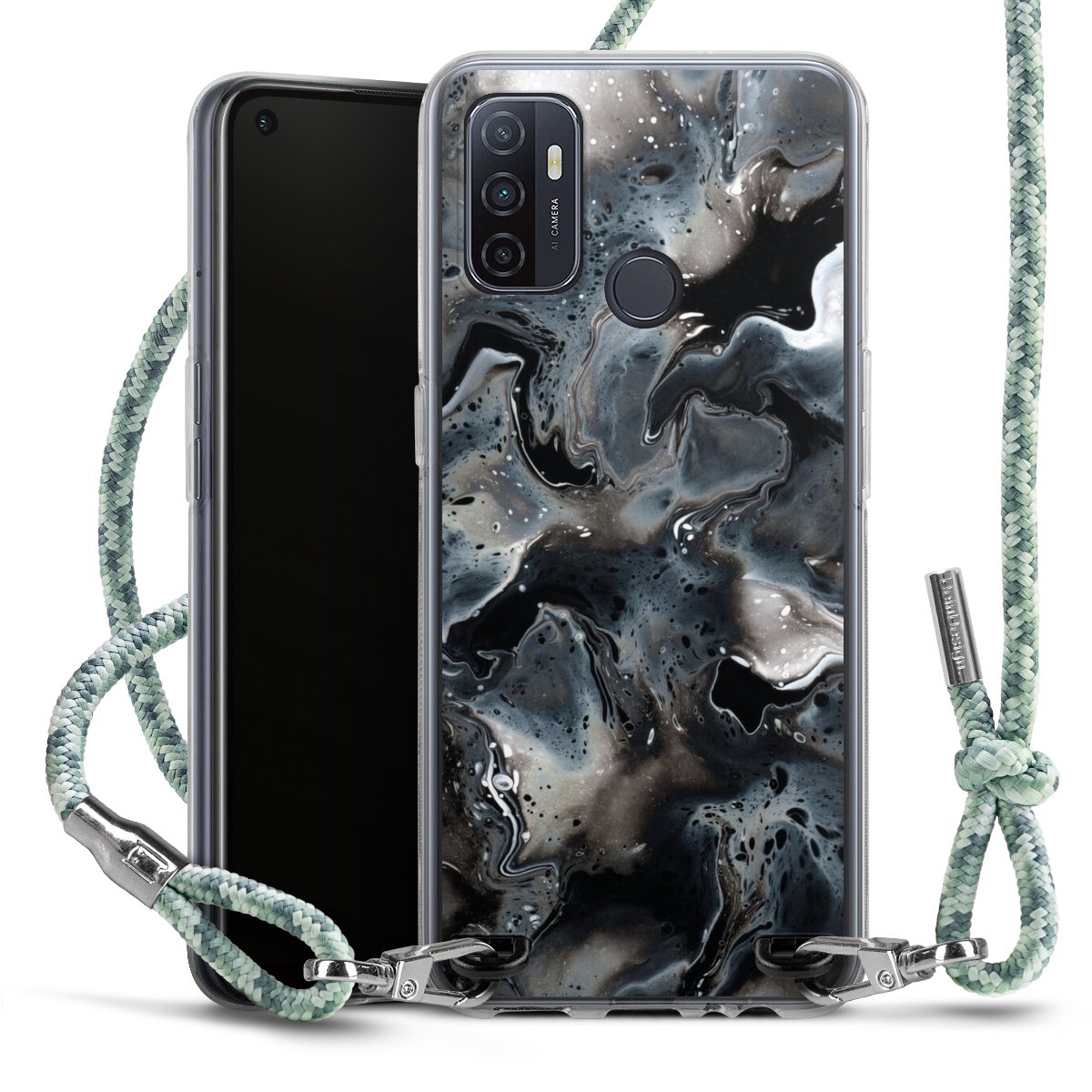 The flexible case is made from a highquality TPU material (thermoplastic Polyurethan). Thanks to its longlasting and break resistant characterisitcs, the case is flexible yet consistent in form and has a great grip and feel. The textile strap made from Polyester gives a chic yet casual accent allowing you to carry your phone like a bag or necklace - a practical gadget perfect for your next adventure. The textile strap is about 1.70 meters long and the length can easily be adjusted through the knots. Our Carry Case is available in Colourful, Mint-Camouflage, Very-Berry, Sahara-Sand and Sparkling-Neon. The ends of the textile strap are covered with metallic end caps to protect them against fraying.