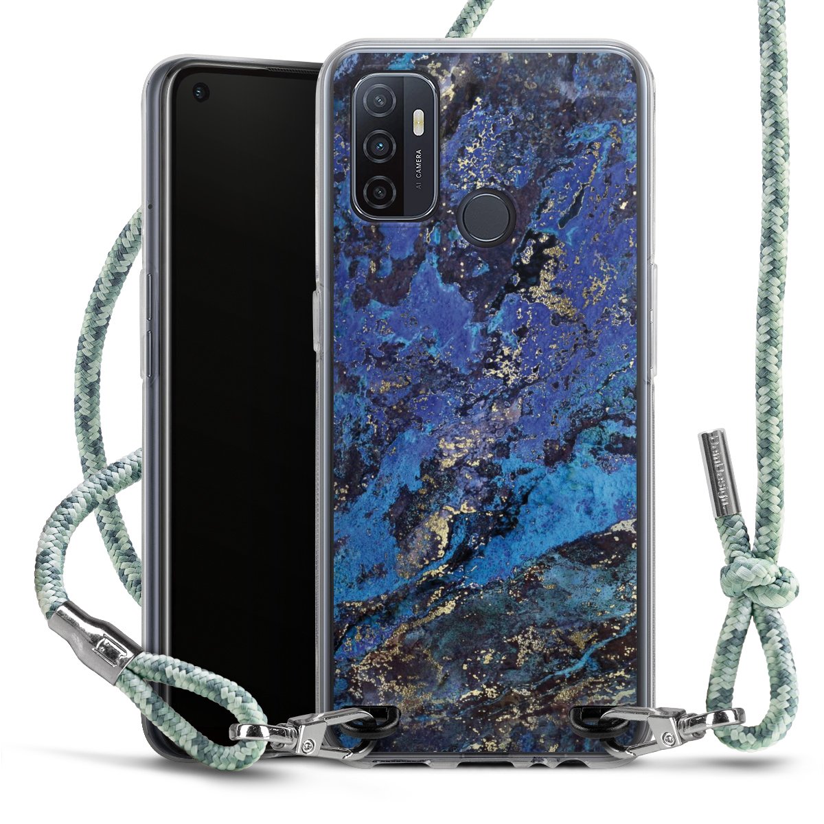 The flexible case is made from a highquality TPU material (thermoplastic Polyurethan). Thanks to its longlasting and break resistant characterisitcs, the case is flexible yet consistent in form and has a great grip and feel. The textile strap made from Polyester gives a chic yet casual accent allowing you to carry your phone like a bag or necklace - a practical gadget perfect for your next adventure. The textile strap is about 1.70 meters long and the length can easily be adjusted through the knots. Our Carry Case is available in Colourful, Mint-Camouflage, Very-Berry, Sahara-Sand and Sparkling-Neon. The ends of the textile strap are covered with metallic end caps to protect them against fraying.