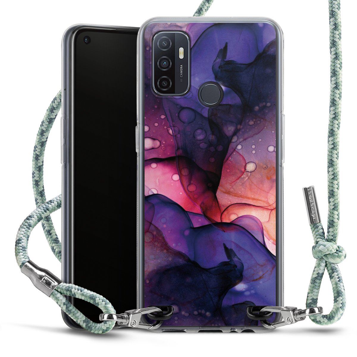 The flexible case is made from a highquality TPU material (thermoplastic Polyurethan). Thanks to its longlasting and break resistant characterisitcs, the case is flexible yet consistent in form and has a great grip and feel. The textile strap made from Polyester gives a chic yet casual accent allowing you to carry your phone like a bag or necklace - a practical gadget perfect for your next adventure. The textile strap is about 1.70 meters long and the length can easily be adjusted through the knots. Our Carry Case is available in Colourful, Mint-Camouflage, Very-Berry, Sahara-Sand and Sparkling-Neon. The ends of the textile strap are covered with metallic end caps to protect them against fraying.