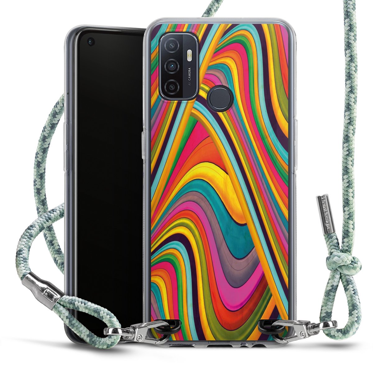 The flexible case is made from a highquality TPU material (thermoplastic Polyurethan). Thanks to its longlasting and break resistant characterisitcs, the case is flexible yet consistent in form and has a great grip and feel. The textile strap made from Polyester gives a chic yet casual accent allowing you to carry your phone like a bag or necklace - a practical gadget perfect for your next adventure. The textile strap is about 1.70 meters long and the length can easily be adjusted through the knots. Our Carry Case is available in Colourful, Mint-Camouflage, Very-Berry, Sahara-Sand and Sparkling-Neon. The ends of the textile strap are covered with metallic end caps to protect them against fraying.