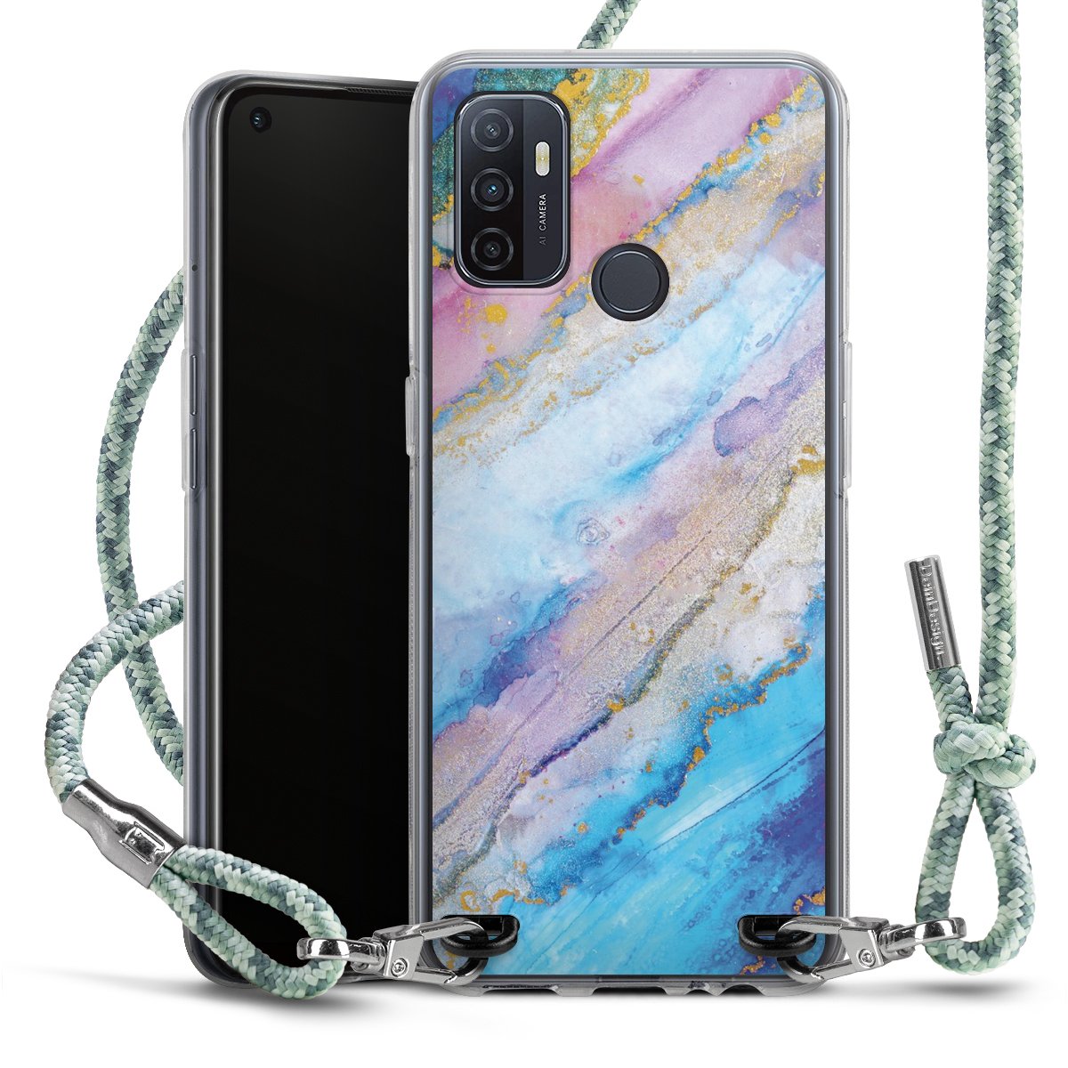 The flexible case is made from a highquality TPU material (thermoplastic Polyurethan). Thanks to its longlasting and break resistant characterisitcs, the case is flexible yet consistent in form and has a great grip and feel. The textile strap made from Polyester gives a chic yet casual accent allowing you to carry your phone like a bag or necklace - a practical gadget perfect for your next adventure. The textile strap is about 1.70 meters long and the length can easily be adjusted through the knots. Our Carry Case is available in Colourful, Mint-Camouflage, Very-Berry, Sahara-Sand and Sparkling-Neon. The ends of the textile strap are covered with metallic end caps to protect them against fraying.