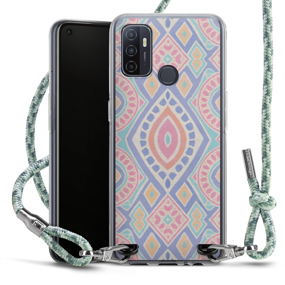 The flexible case is made from a highquality TPU material (thermoplastic Polyurethan). Thanks to its longlasting and break resistant characterisitcs, the case is flexible yet consistent in form and has a great grip and feel. The textile strap made from Polyester gives a chic yet casual accent allowing you to carry your phone like a bag or necklace - a practical gadget perfect for your next adventure. The textile strap is about 1.70 meters long and the length can easily be adjusted through the knots. Our Carry Case is available in Colourful, Mint-Camouflage, Very-Berry, Sahara-Sand and Sparkling-Neon. The ends of the textile strap are covered with metallic end caps to protect them against fraying.