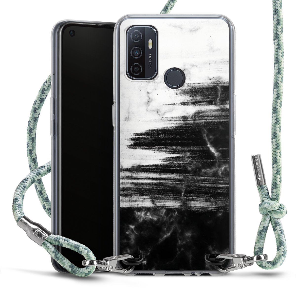 The flexible case is made from a highquality TPU material (thermoplastic Polyurethan). Thanks to its longlasting and break resistant characterisitcs, the case is flexible yet consistent in form and has a great grip and feel. The textile strap made from Polyester gives a chic yet casual accent allowing you to carry your phone like a bag or necklace - a practical gadget perfect for your next adventure. The textile strap is about 1.70 meters long and the length can easily be adjusted through the knots. Our Carry Case is available in Colourful, Mint-Camouflage, Very-Berry, Sahara-Sand and Sparkling-Neon. The ends of the textile strap are covered with metallic end caps to protect them against fraying.