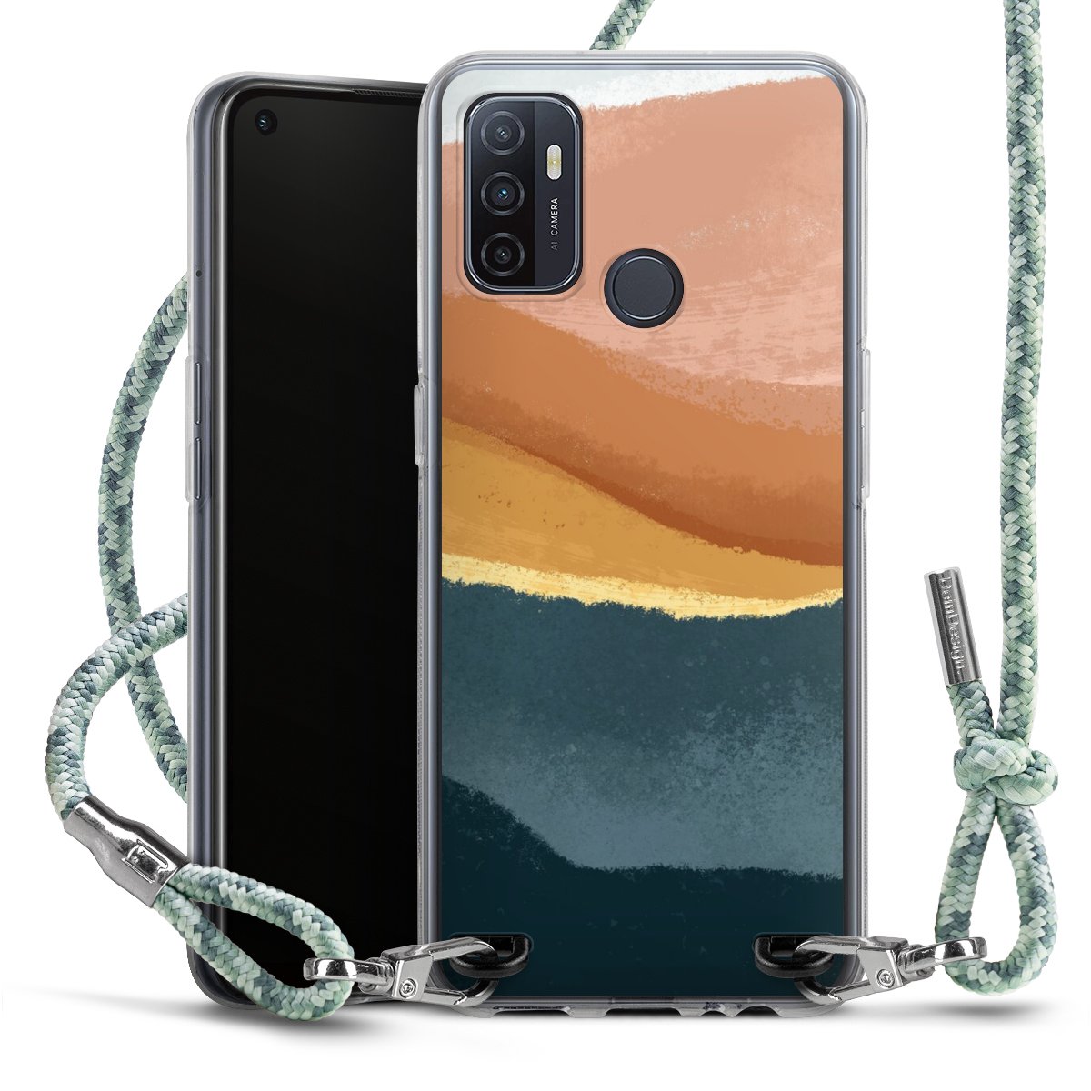 The flexible case is made from a highquality TPU material (thermoplastic Polyurethan). Thanks to its longlasting and break resistant characterisitcs, the case is flexible yet consistent in form and has a great grip and feel. The textile strap made from Polyester gives a chic yet casual accent allowing you to carry your phone like a bag or necklace - a practical gadget perfect for your next adventure. The textile strap is about 1.70 meters long and the length can easily be adjusted through the knots. Our Carry Case is available in Colourful, Mint-Camouflage, Very-Berry, Sahara-Sand and Sparkling-Neon. The ends of the textile strap are covered with metallic end caps to protect them against fraying.