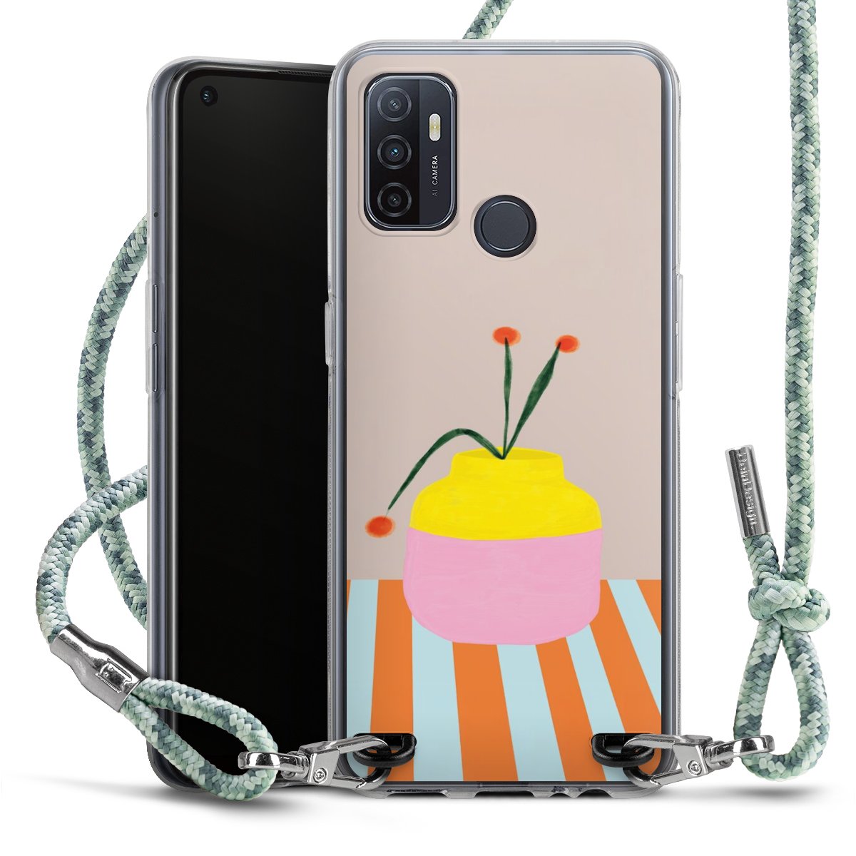 The flexible case is made from a highquality TPU material (thermoplastic Polyurethan). Thanks to its longlasting and break resistant characterisitcs, the case is flexible yet consistent in form and has a great grip and feel. The textile strap made from Polyester gives a chic yet casual accent allowing you to carry your phone like a bag or necklace - a practical gadget perfect for your next adventure. The textile strap is about 1.70 meters long and the length can easily be adjusted through the knots. Our Carry Case is available in Colourful, Mint-Camouflage, Very-Berry, Sahara-Sand and Sparkling-Neon. The ends of the textile strap are covered with metallic end caps to protect them against fraying.