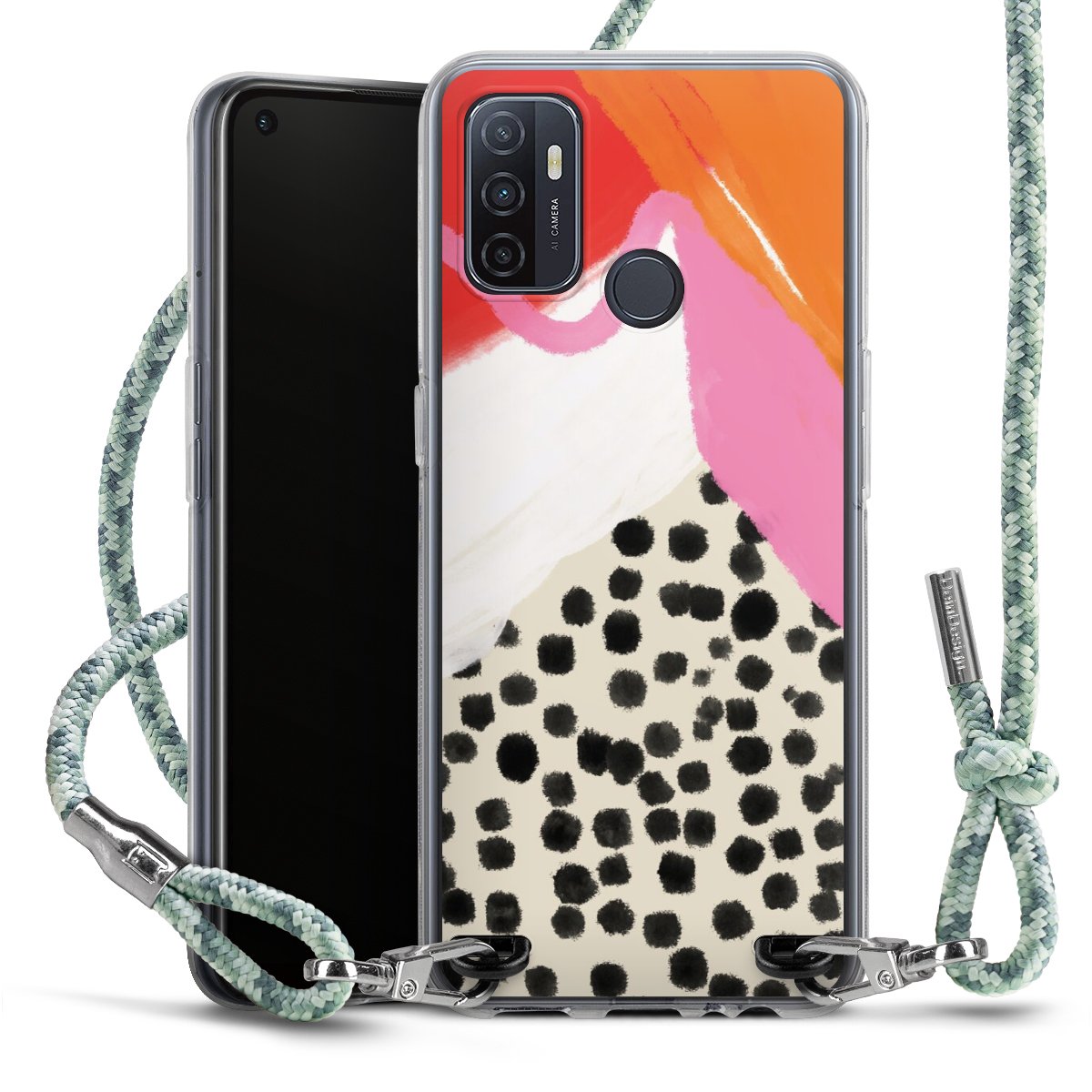 The flexible case is made from a highquality TPU material (thermoplastic Polyurethan). Thanks to its longlasting and break resistant characterisitcs, the case is flexible yet consistent in form and has a great grip and feel. The textile strap made from Polyester gives a chic yet casual accent allowing you to carry your phone like a bag or necklace - a practical gadget perfect for your next adventure. The textile strap is about 1.70 meters long and the length can easily be adjusted through the knots. Our Carry Case is available in Colourful, Mint-Camouflage, Very-Berry, Sahara-Sand and Sparkling-Neon. The ends of the textile strap are covered with metallic end caps to protect them against fraying.