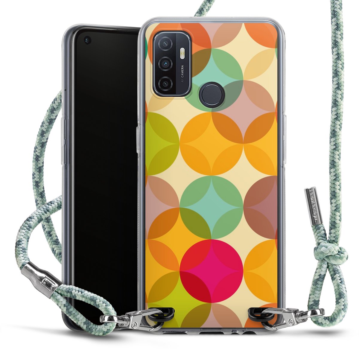 The flexible case is made from a highquality TPU material (thermoplastic Polyurethan). Thanks to its longlasting and break resistant characterisitcs, the case is flexible yet consistent in form and has a great grip and feel. The textile strap made from Polyester gives a chic yet casual accent allowing you to carry your phone like a bag or necklace - a practical gadget perfect for your next adventure. The textile strap is about 1.70 meters long and the length can easily be adjusted through the knots. Our Carry Case is available in Colourful, Mint-Camouflage, Very-Berry, Sahara-Sand and Sparkling-Neon. The ends of the textile strap are covered with metallic end caps to protect them against fraying.