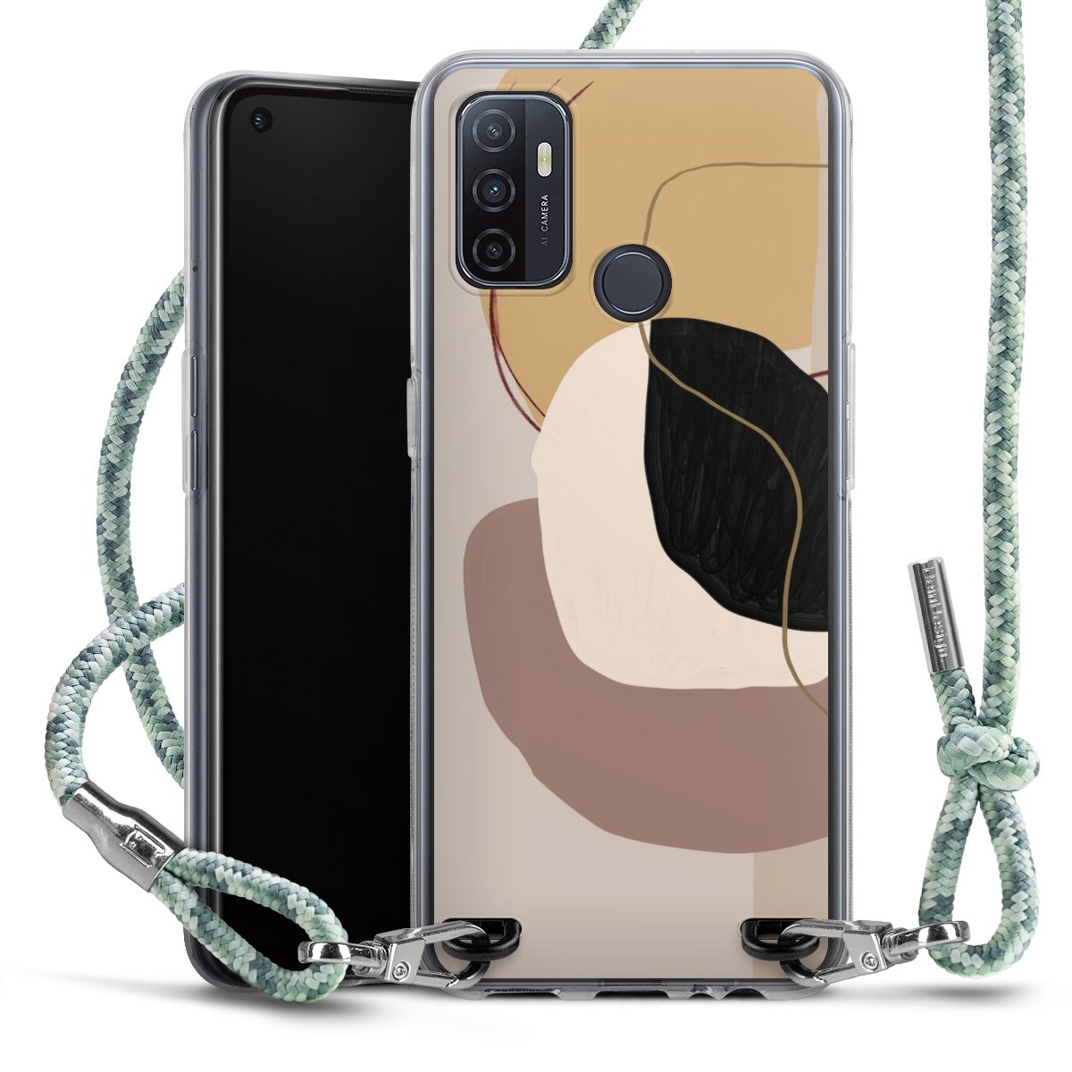 The flexible case is made from a highquality TPU material (thermoplastic Polyurethan). Thanks to its longlasting and break resistant characterisitcs, the case is flexible yet consistent in form and has a great grip and feel. The textile strap made from Polyester gives a chic yet casual accent allowing you to carry your phone like a bag or necklace - a practical gadget perfect for your next adventure. The textile strap is about 1.70 meters long and the length can easily be adjusted through the knots. Our Carry Case is available in Colourful, Mint-Camouflage, Very-Berry, Sahara-Sand and Sparkling-Neon. The ends of the textile strap are covered with metallic end caps to protect them against fraying.