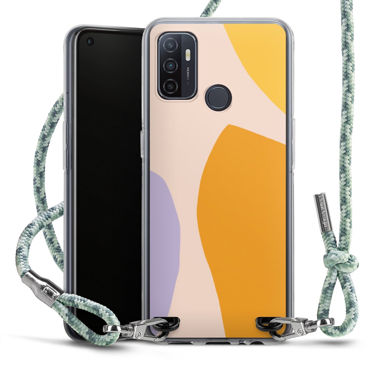 The flexible case is made from a highquality TPU material (thermoplastic Polyurethan). Thanks to its longlasting and break resistant characterisitcs, the case is flexible yet consistent in form and has a great grip and feel. The textile strap made from Polyester gives a chic yet casual accent allowing you to carry your phone like a bag or necklace - a practical gadget perfect for your next adventure. The textile strap is about 1.70 meters long and the length can easily be adjusted through the knots. Our Carry Case is available in Colourful, Mint-Camouflage, Very-Berry, Sahara-Sand and Sparkling-Neon. The ends of the textile strap are covered with metallic end caps to protect them against fraying.