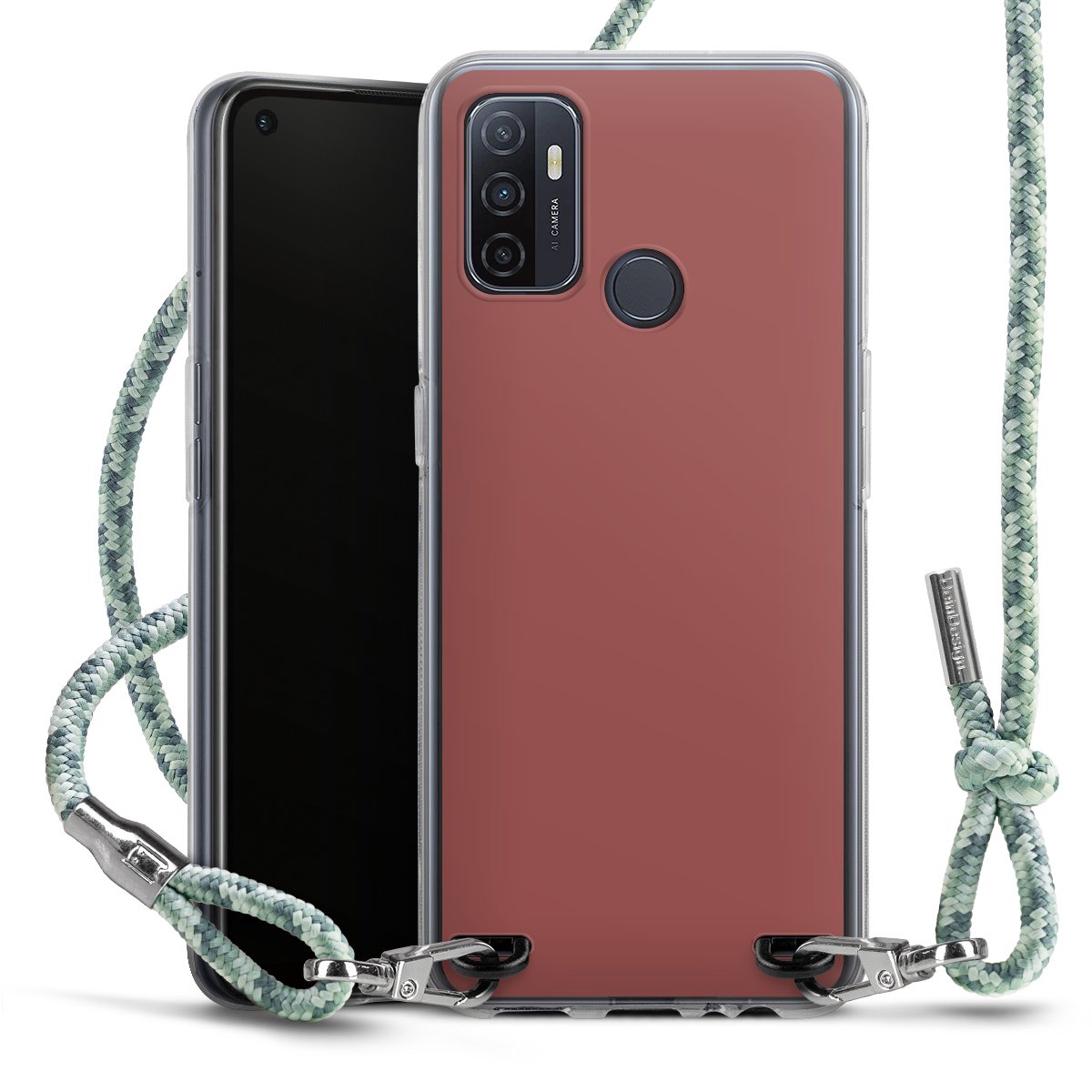 The flexible case is made from a highquality TPU material (thermoplastic Polyurethan). Thanks to its longlasting and break resistant characterisitcs, the case is flexible yet consistent in form and has a great grip and feel. The textile strap made from Polyester gives a chic yet casual accent allowing you to carry your phone like a bag or necklace - a practical gadget perfect for your next adventure. The textile strap is about 1.70 meters long and the length can easily be adjusted through the knots. Our Carry Case is available in Colourful, Mint-Camouflage, Very-Berry, Sahara-Sand and Sparkling-Neon. The ends of the textile strap are covered with metallic end caps to protect them against fraying.