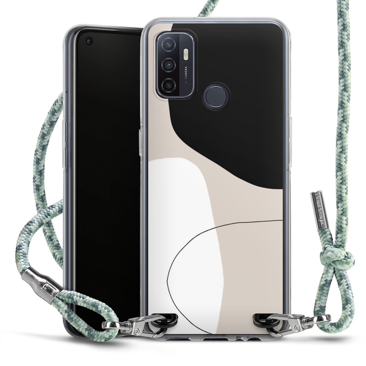 The flexible case is made from a highquality TPU material (thermoplastic Polyurethan). Thanks to its longlasting and break resistant characterisitcs, the case is flexible yet consistent in form and has a great grip and feel. The textile strap made from Polyester gives a chic yet casual accent allowing you to carry your phone like a bag or necklace - a practical gadget perfect for your next adventure. The textile strap is about 1.70 meters long and the length can easily be adjusted through the knots. Our Carry Case is available in Colourful, Mint-Camouflage, Very-Berry, Sahara-Sand and Sparkling-Neon. The ends of the textile strap are covered with metallic end caps to protect them against fraying.