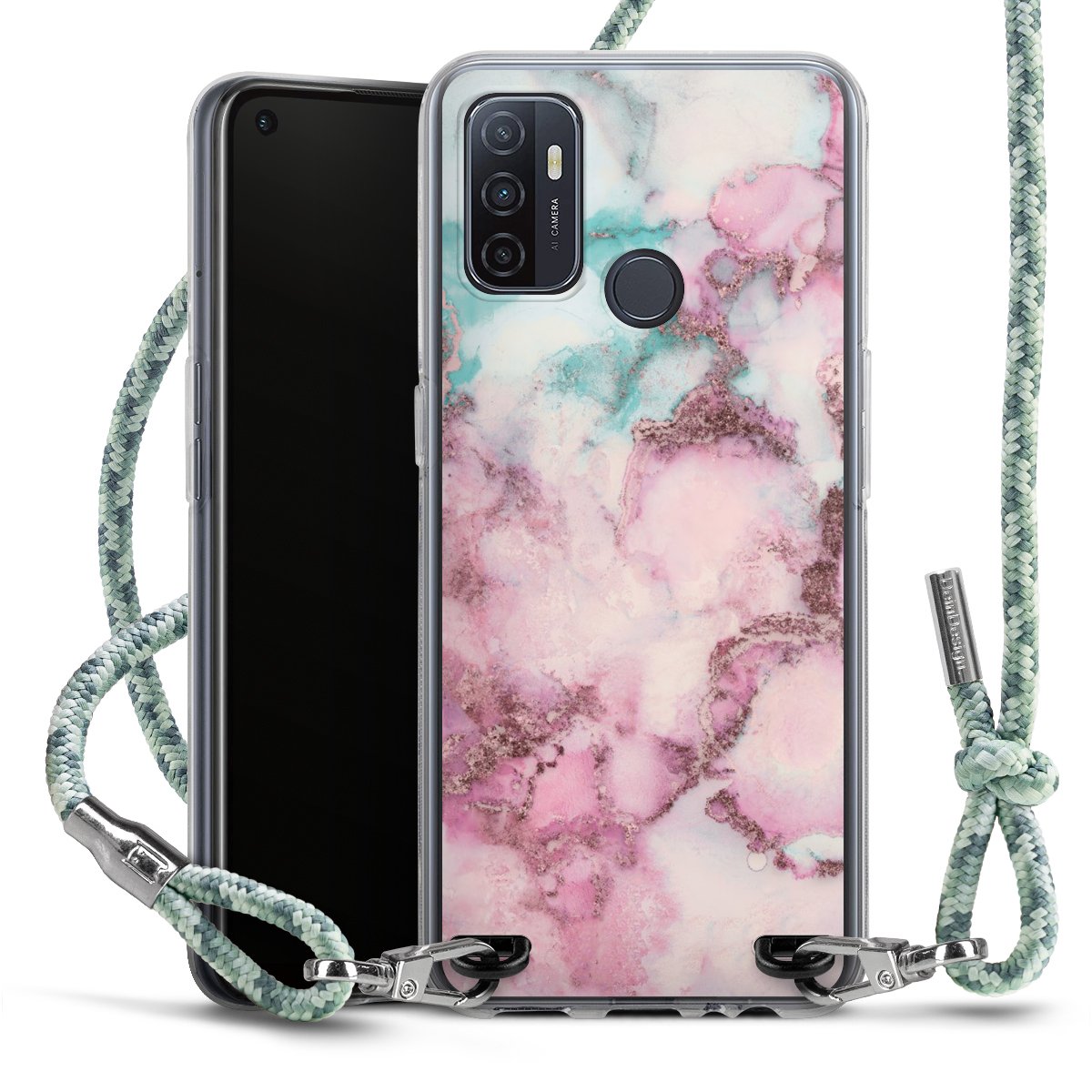 The flexible case is made from a highquality TPU material (thermoplastic Polyurethan). Thanks to its longlasting and break resistant characterisitcs, the case is flexible yet consistent in form and has a great grip and feel. The textile strap made from Polyester gives a chic yet casual accent allowing you to carry your phone like a bag or necklace - a practical gadget perfect for your next adventure. The textile strap is about 1.70 meters long and the length can easily be adjusted through the knots. Our Carry Case is available in Colourful, Mint-Camouflage, Very-Berry, Sahara-Sand and Sparkling-Neon. The ends of the textile strap are covered with metallic end caps to protect them against fraying.