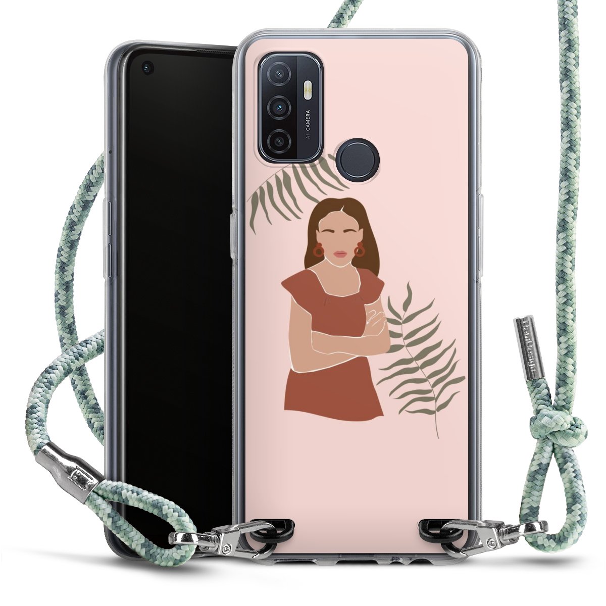 The flexible case is made from a highquality TPU material (thermoplastic Polyurethan). Thanks to its longlasting and break resistant characterisitcs, the case is flexible yet consistent in form and has a great grip and feel. The textile strap made from Polyester gives a chic yet casual accent allowing you to carry your phone like a bag or necklace - a practical gadget perfect for your next adventure. The textile strap is about 1.70 meters long and the length can easily be adjusted through the knots. Our Carry Case is available in Colourful, Mint-Camouflage, Very-Berry, Sahara-Sand and Sparkling-Neon. The ends of the textile strap are covered with metallic end caps to protect them against fraying.