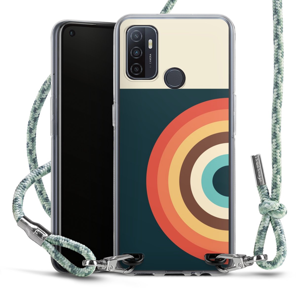The flexible case is made from a highquality TPU material (thermoplastic Polyurethan). Thanks to its longlasting and break resistant characterisitcs, the case is flexible yet consistent in form and has a great grip and feel. The textile strap made from Polyester gives a chic yet casual accent allowing you to carry your phone like a bag or necklace - a practical gadget perfect for your next adventure. The textile strap is about 1.70 meters long and the length can easily be adjusted through the knots. Our Carry Case is available in Colourful, Mint-Camouflage, Very-Berry, Sahara-Sand and Sparkling-Neon. The ends of the textile strap are covered with metallic end caps to protect them against fraying.