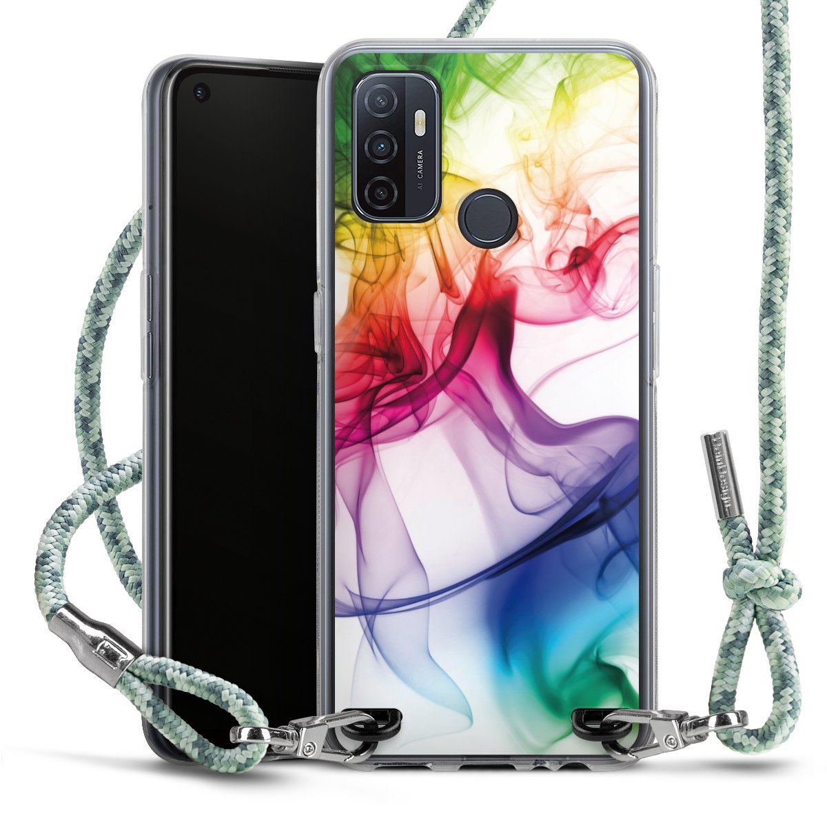 The flexible case is made from a highquality TPU material (thermoplastic Polyurethan). Thanks to its longlasting and break resistant characterisitcs, the case is flexible yet consistent in form and has a great grip and feel. The textile strap made from Polyester gives a chic yet casual accent allowing you to carry your phone like a bag or necklace - a practical gadget perfect for your next adventure. The textile strap is about 1.70 meters long and the length can easily be adjusted through the knots. Our Carry Case is available in Colourful, Mint-Camouflage, Very-Berry, Sahara-Sand and Sparkling-Neon. The ends of the textile strap are covered with metallic end caps to protect them against fraying.