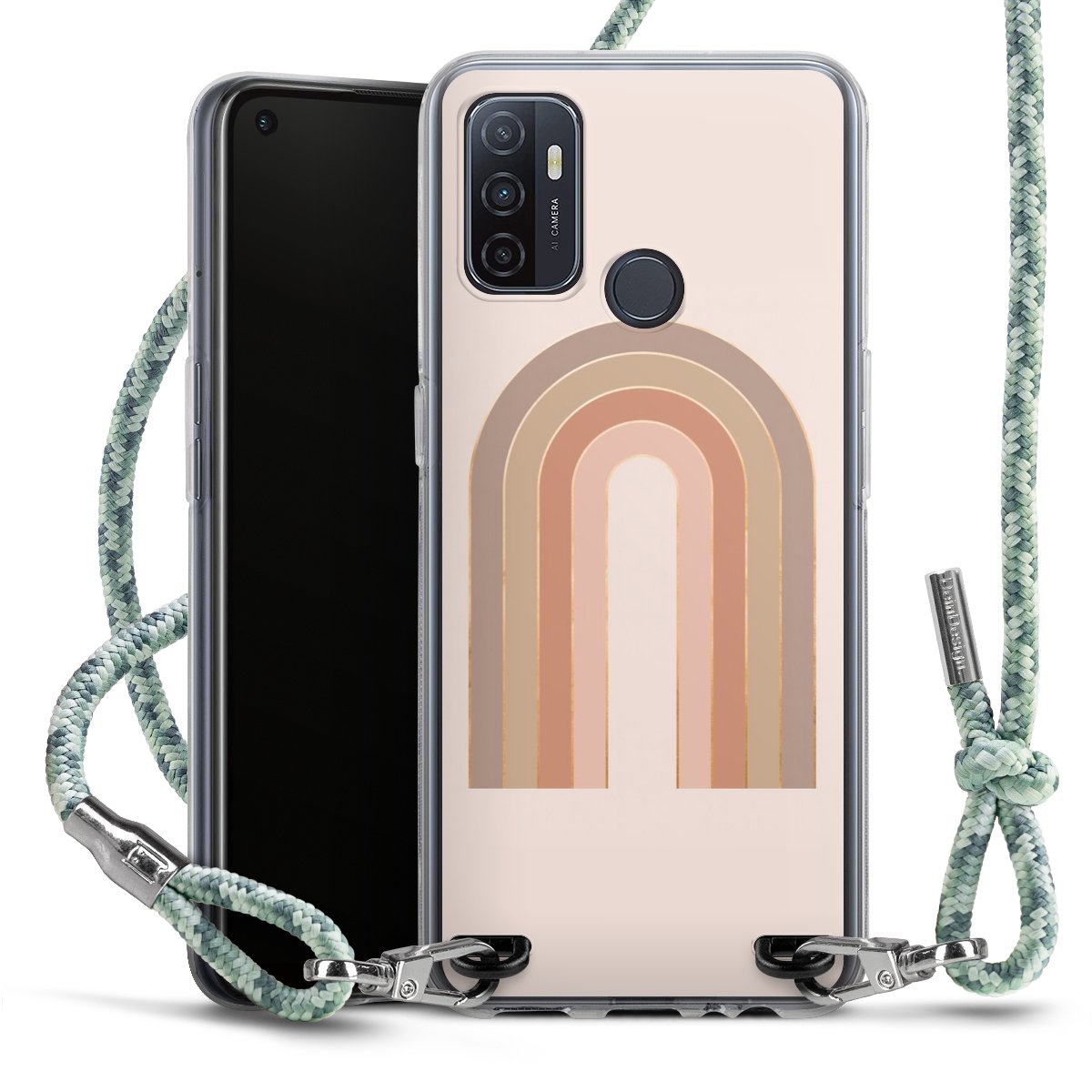 The flexible case is made from a highquality TPU material (thermoplastic Polyurethan). Thanks to its longlasting and break resistant characterisitcs, the case is flexible yet consistent in form and has a great grip and feel. The textile strap made from Polyester gives a chic yet casual accent allowing you to carry your phone like a bag or necklace - a practical gadget perfect for your next adventure. The textile strap is about 1.70 meters long and the length can easily be adjusted through the knots. Our Carry Case is available in Colourful, Mint-Camouflage, Very-Berry, Sahara-Sand and Sparkling-Neon. The ends of the textile strap are covered with metallic end caps to protect them against fraying.
