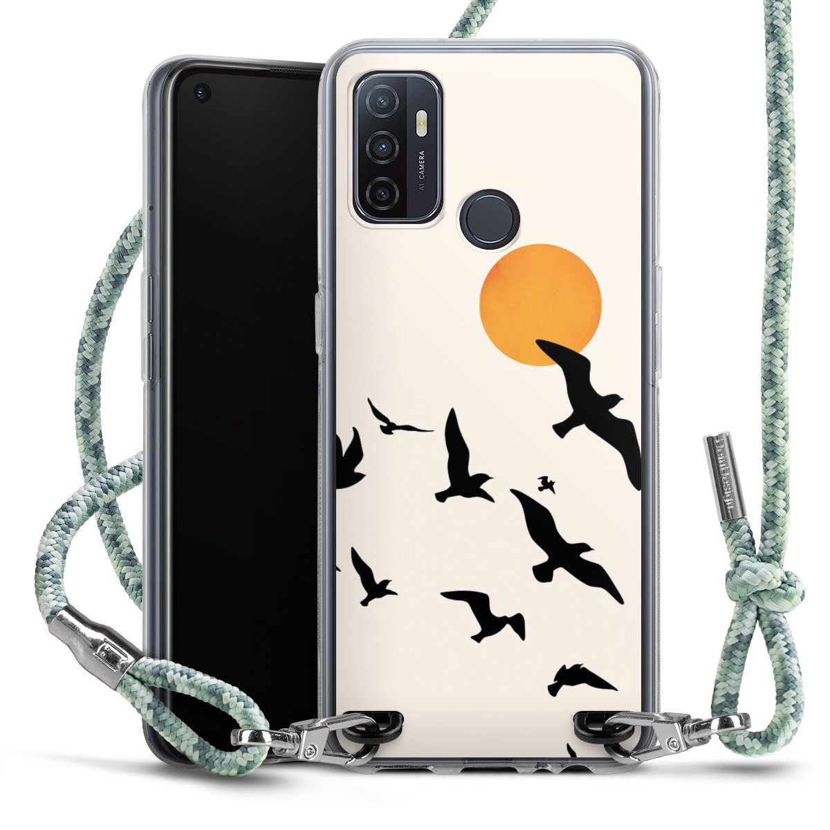 The flexible case is made from a highquality TPU material (thermoplastic Polyurethan). Thanks to its longlasting and break resistant characterisitcs, the case is flexible yet consistent in form and has a great grip and feel. The textile strap made from Polyester gives a chic yet casual accent allowing you to carry your phone like a bag or necklace - a practical gadget perfect for your next adventure. The textile strap is about 1.70 meters long and the length can easily be adjusted through the knots. Our Carry Case is available in Colourful, Mint-Camouflage, Very-Berry, Sahara-Sand and Sparkling-Neon. The ends of the textile strap are covered with metallic end caps to protect them against fraying.