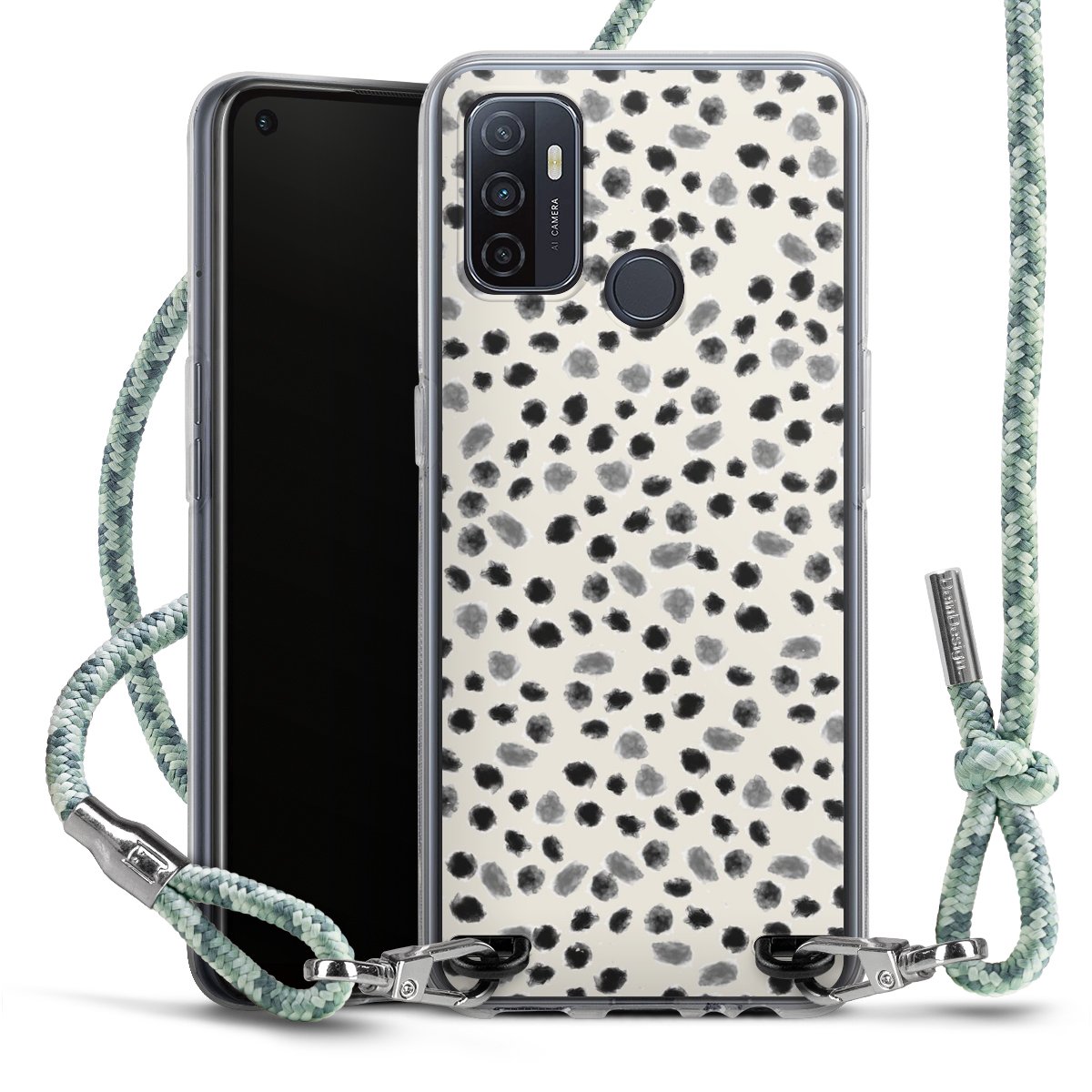 The flexible case is made from a highquality TPU material (thermoplastic Polyurethan). Thanks to its longlasting and break resistant characterisitcs, the case is flexible yet consistent in form and has a great grip and feel. The textile strap made from Polyester gives a chic yet casual accent allowing you to carry your phone like a bag or necklace - a practical gadget perfect for your next adventure. The textile strap is about 1.70 meters long and the length can easily be adjusted through the knots. Our Carry Case is available in Colourful, Mint-Camouflage, Very-Berry, Sahara-Sand and Sparkling-Neon. The ends of the textile strap are covered with metallic end caps to protect them against fraying.