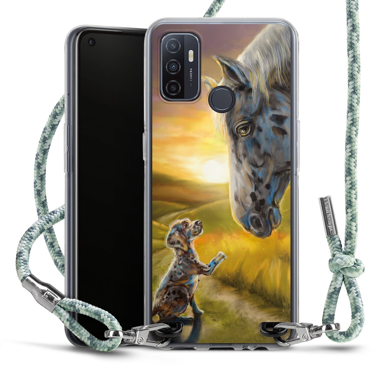 The flexible case is made from a highquality TPU material (thermoplastic Polyurethan). Thanks to its longlasting and break resistant characterisitcs, the case is flexible yet consistent in form and has a great grip and feel. The textile strap made from Polyester gives a chic yet casual accent allowing you to carry your phone like a bag or necklace - a practical gadget perfect for your next adventure. The textile strap is about 1.70 meters long and the length can easily be adjusted through the knots. Our Carry Case is available in Colourful, Mint-Camouflage, Very-Berry, Sahara-Sand and Sparkling-Neon. The ends of the textile strap are covered with metallic end caps to protect them against fraying.