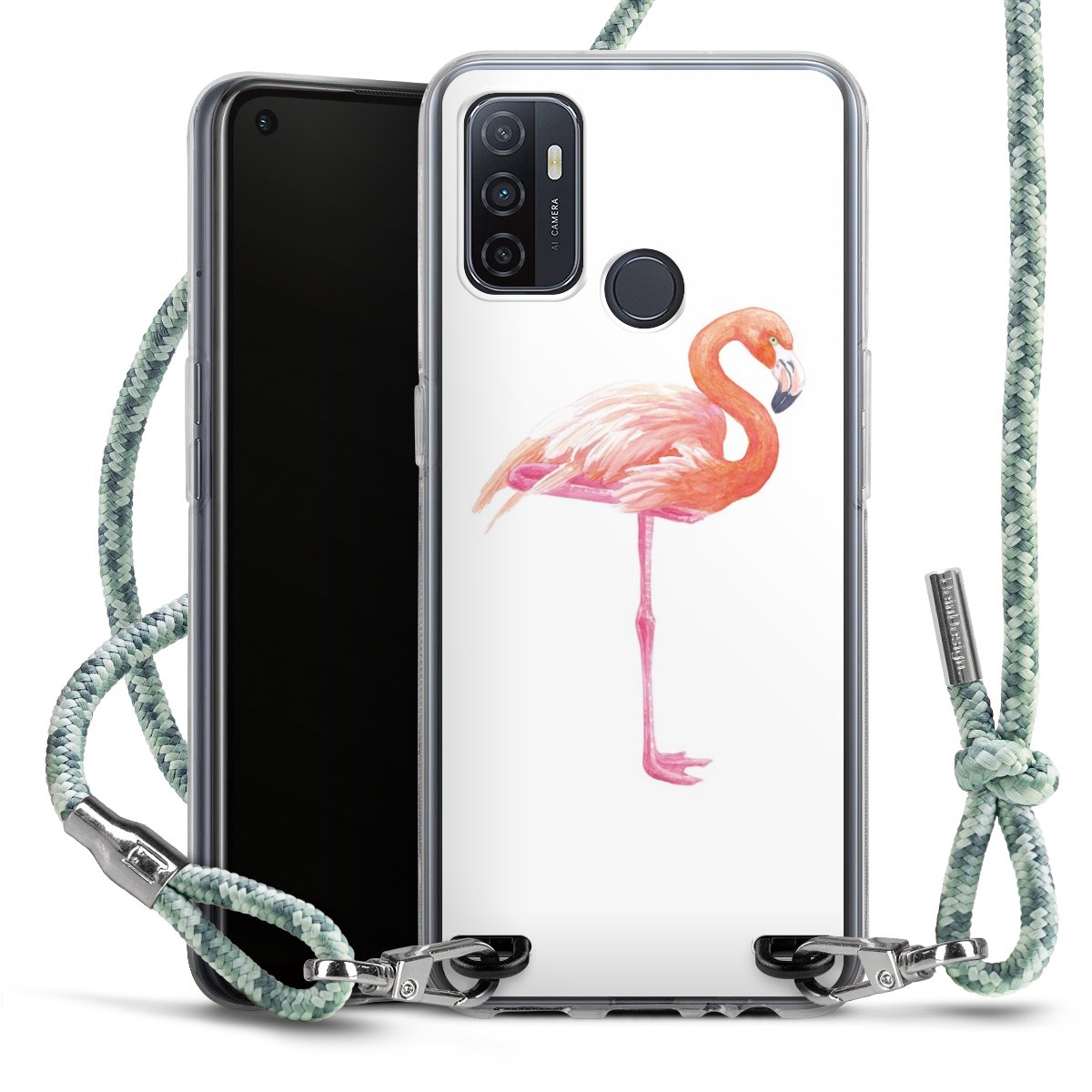 The flexible case is made from a highquality TPU material (thermoplastic Polyurethan). Thanks to its longlasting and break resistant characterisitcs, the case is flexible yet consistent in form and has a great grip and feel. The textile strap made from Polyester gives a chic yet casual accent allowing you to carry your phone like a bag or necklace - a practical gadget perfect for your next adventure. The textile strap is about 1.70 meters long and the length can easily be adjusted through the knots. Our Carry Case is available in Colourful, Mint-Camouflage, Very-Berry, Sahara-Sand and Sparkling-Neon. The ends of the textile strap are covered with metallic end caps to protect them against fraying.