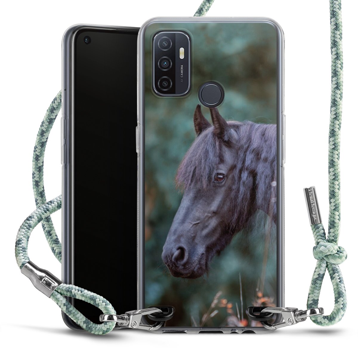 The flexible case is made from a highquality TPU material (thermoplastic Polyurethan). Thanks to its longlasting and break resistant characterisitcs, the case is flexible yet consistent in form and has a great grip and feel. The textile strap made from Polyester gives a chic yet casual accent allowing you to carry your phone like a bag or necklace - a practical gadget perfect for your next adventure. The textile strap is about 1.70 meters long and the length can easily be adjusted through the knots. Our Carry Case is available in Colourful, Mint-Camouflage, Very-Berry, Sahara-Sand and Sparkling-Neon. The ends of the textile strap are covered with metallic end caps to protect them against fraying.