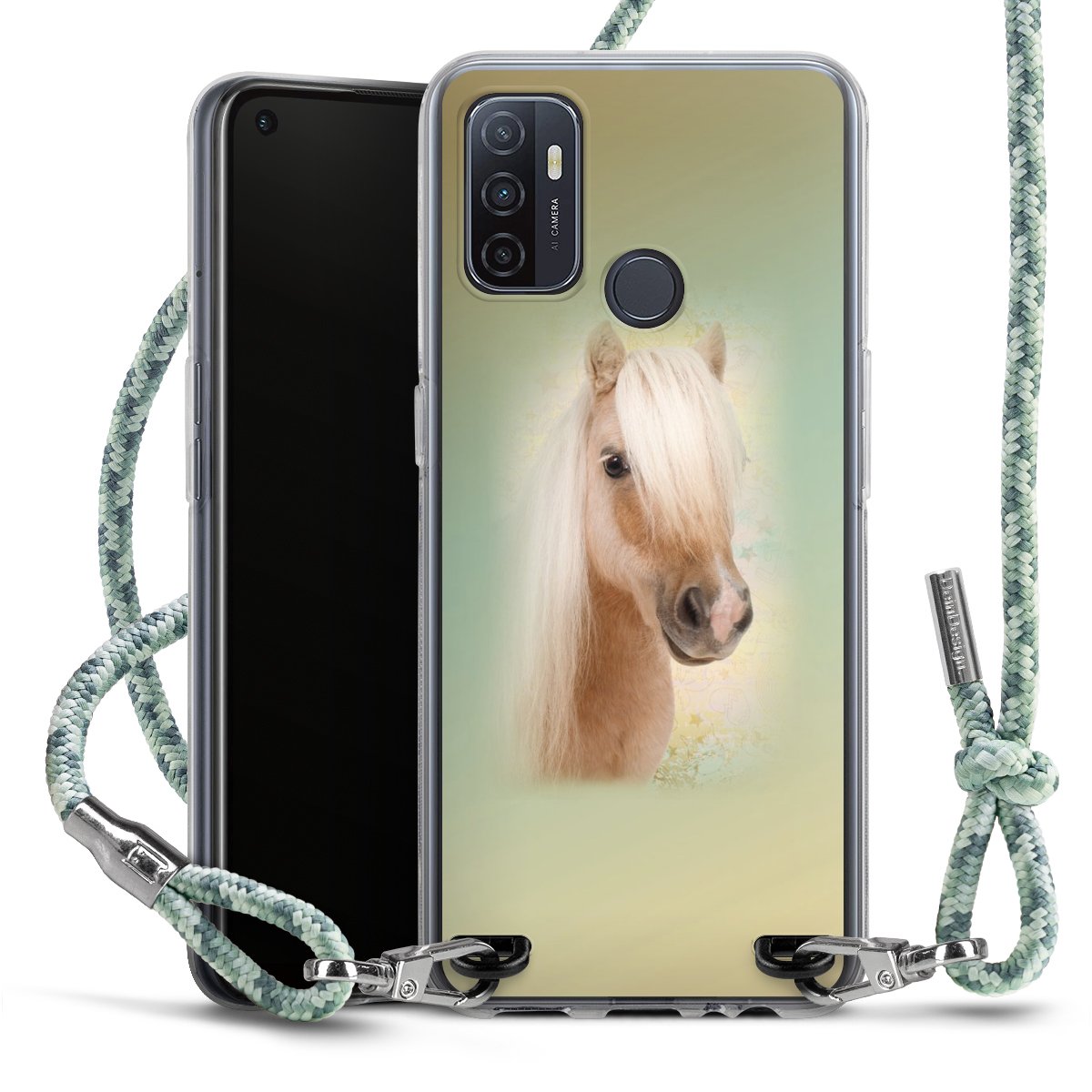 The flexible case is made from a highquality TPU material (thermoplastic Polyurethan). Thanks to its longlasting and break resistant characterisitcs, the case is flexible yet consistent in form and has a great grip and feel. The textile strap made from Polyester gives a chic yet casual accent allowing you to carry your phone like a bag or necklace - a practical gadget perfect for your next adventure. The textile strap is about 1.70 meters long and the length can easily be adjusted through the knots. Our Carry Case is available in Colourful, Mint-Camouflage, Very-Berry, Sahara-Sand and Sparkling-Neon. The ends of the textile strap are covered with metallic end caps to protect them against fraying.