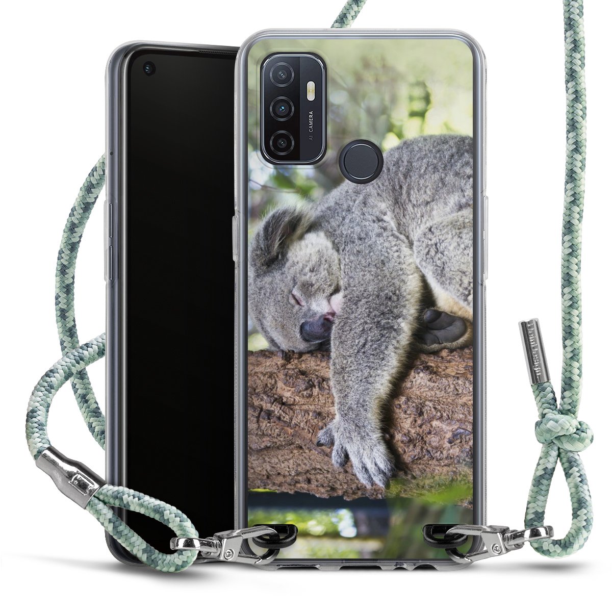 The flexible case is made from a highquality TPU material (thermoplastic Polyurethan). Thanks to its longlasting and break resistant characterisitcs, the case is flexible yet consistent in form and has a great grip and feel. The textile strap made from Polyester gives a chic yet casual accent allowing you to carry your phone like a bag or necklace - a practical gadget perfect for your next adventure. The textile strap is about 1.70 meters long and the length can easily be adjusted through the knots. Our Carry Case is available in Colourful, Mint-Camouflage, Very-Berry, Sahara-Sand and Sparkling-Neon. The ends of the textile strap are covered with metallic end caps to protect them against fraying.