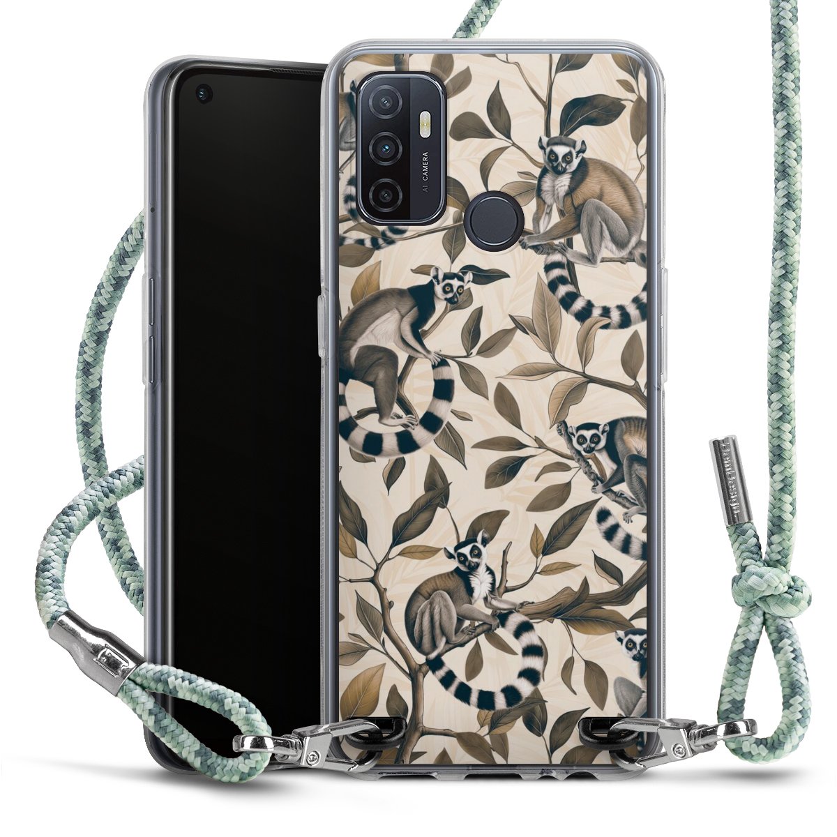 The flexible case is made from a highquality TPU material (thermoplastic Polyurethan). Thanks to its longlasting and break resistant characterisitcs, the case is flexible yet consistent in form and has a great grip and feel. The textile strap made from Polyester gives a chic yet casual accent allowing you to carry your phone like a bag or necklace - a practical gadget perfect for your next adventure. The textile strap is about 1.70 meters long and the length can easily be adjusted through the knots. Our Carry Case is available in Colourful, Mint-Camouflage, Very-Berry, Sahara-Sand and Sparkling-Neon. The ends of the textile strap are covered with metallic end caps to protect them against fraying.