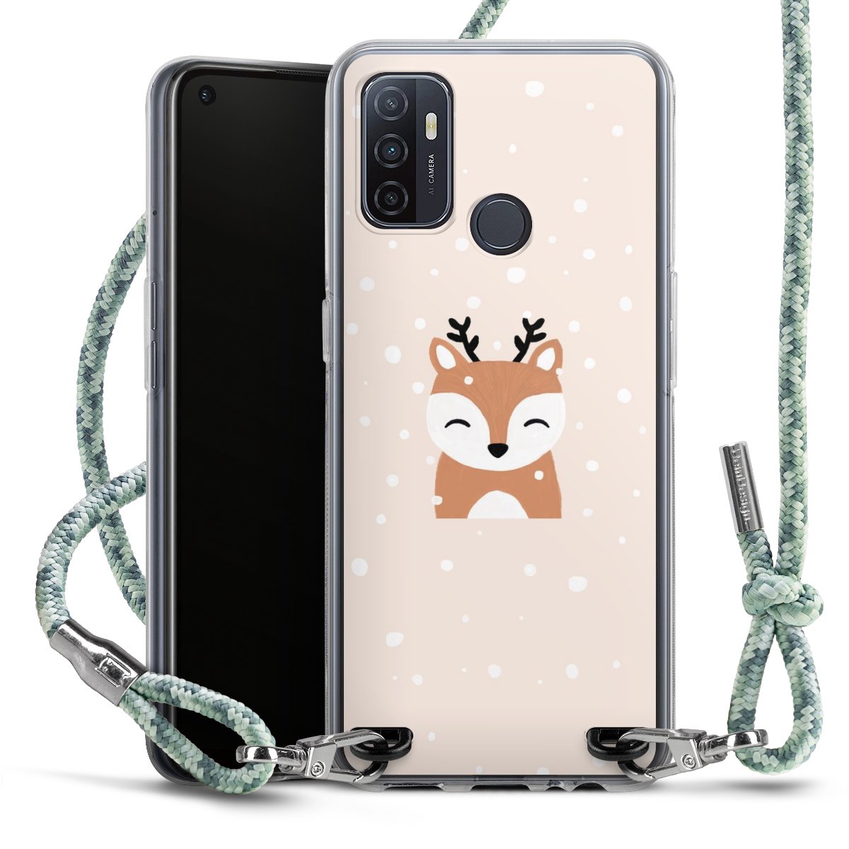 The flexible case is made from a highquality TPU material (thermoplastic Polyurethan). Thanks to its longlasting and break resistant characterisitcs, the case is flexible yet consistent in form and has a great grip and feel. The textile strap made from Polyester gives a chic yet casual accent allowing you to carry your phone like a bag or necklace - a practical gadget perfect for your next adventure. The textile strap is about 1.70 meters long and the length can easily be adjusted through the knots. Our Carry Case is available in Colourful, Mint-Camouflage, Very-Berry, Sahara-Sand and Sparkling-Neon. The ends of the textile strap are covered with metallic end caps to protect them against fraying.