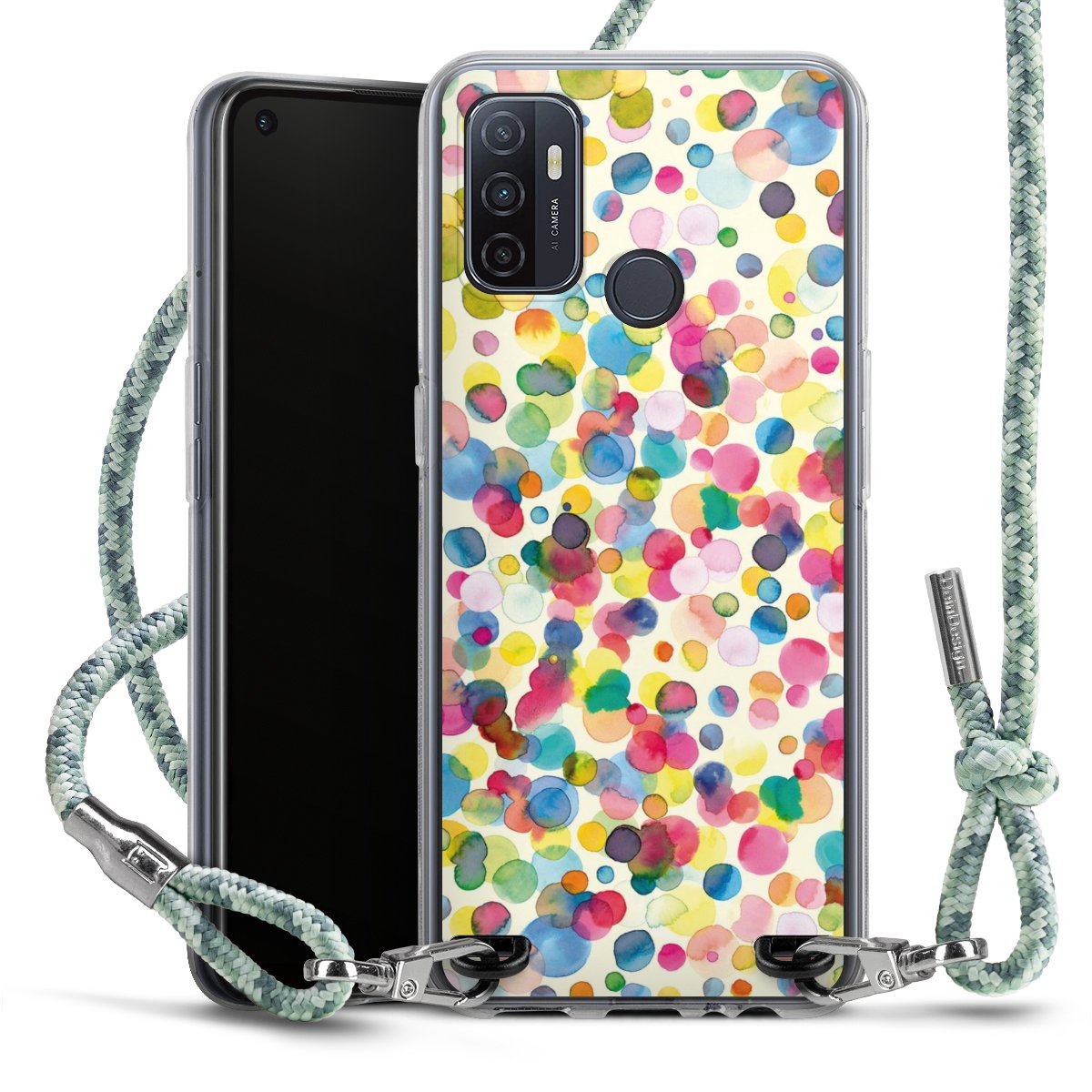 The flexible case is made from a highquality TPU material (thermoplastic Polyurethan). Thanks to its longlasting and break resistant characterisitcs, the case is flexible yet consistent in form and has a great grip and feel. The textile strap made from Polyester gives a chic yet casual accent allowing you to carry your phone like a bag or necklace - a practical gadget perfect for your next adventure. The textile strap is about 1.70 meters long and the length can easily be adjusted through the knots. Our Carry Case is available in Colourful, Mint-Camouflage, Very-Berry, Sahara-Sand and Sparkling-Neon. The ends of the textile strap are covered with metallic end caps to protect them against fraying.