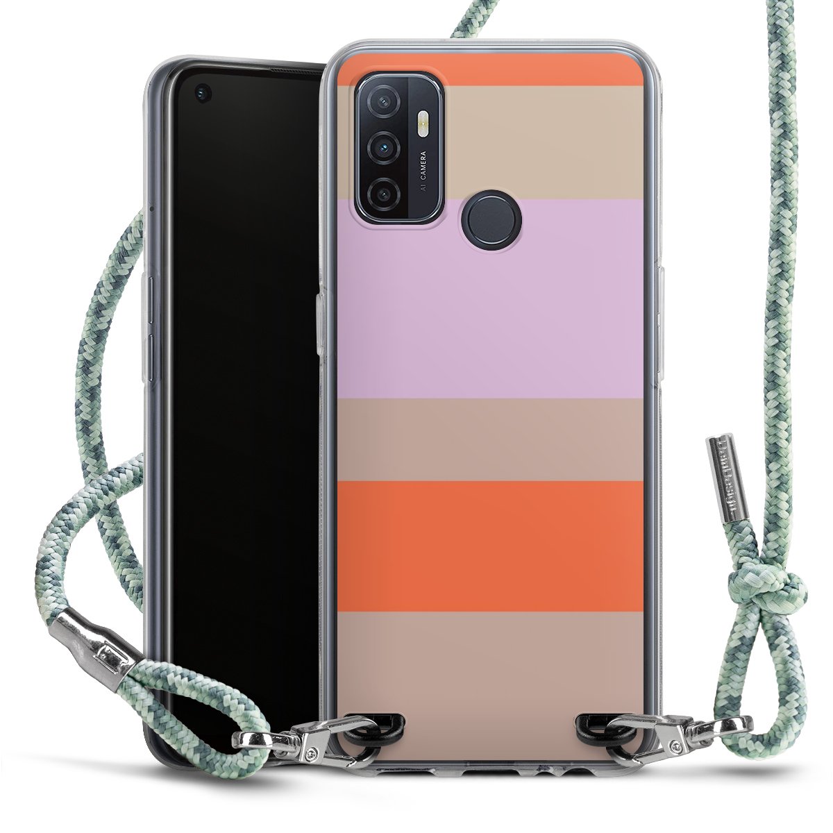 The flexible case is made from a highquality TPU material (thermoplastic Polyurethan). Thanks to its longlasting and break resistant characterisitcs, the case is flexible yet consistent in form and has a great grip and feel. The textile strap made from Polyester gives a chic yet casual accent allowing you to carry your phone like a bag or necklace - a practical gadget perfect for your next adventure. The textile strap is about 1.70 meters long and the length can easily be adjusted through the knots. Our Carry Case is available in Colourful, Mint-Camouflage, Very-Berry, Sahara-Sand and Sparkling-Neon. The ends of the textile strap are covered with metallic end caps to protect them against fraying.