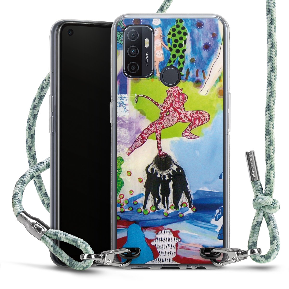 The flexible case is made from a highquality TPU material (thermoplastic Polyurethan). Thanks to its longlasting and break resistant characterisitcs, the case is flexible yet consistent in form and has a great grip and feel. The textile strap made from Polyester gives a chic yet casual accent allowing you to carry your phone like a bag or necklace - a practical gadget perfect for your next adventure. The textile strap is about 1.70 meters long and the length can easily be adjusted through the knots. Our Carry Case is available in Colourful, Mint-Camouflage, Very-Berry, Sahara-Sand and Sparkling-Neon. The ends of the textile strap are covered with metallic end caps to protect them against fraying.