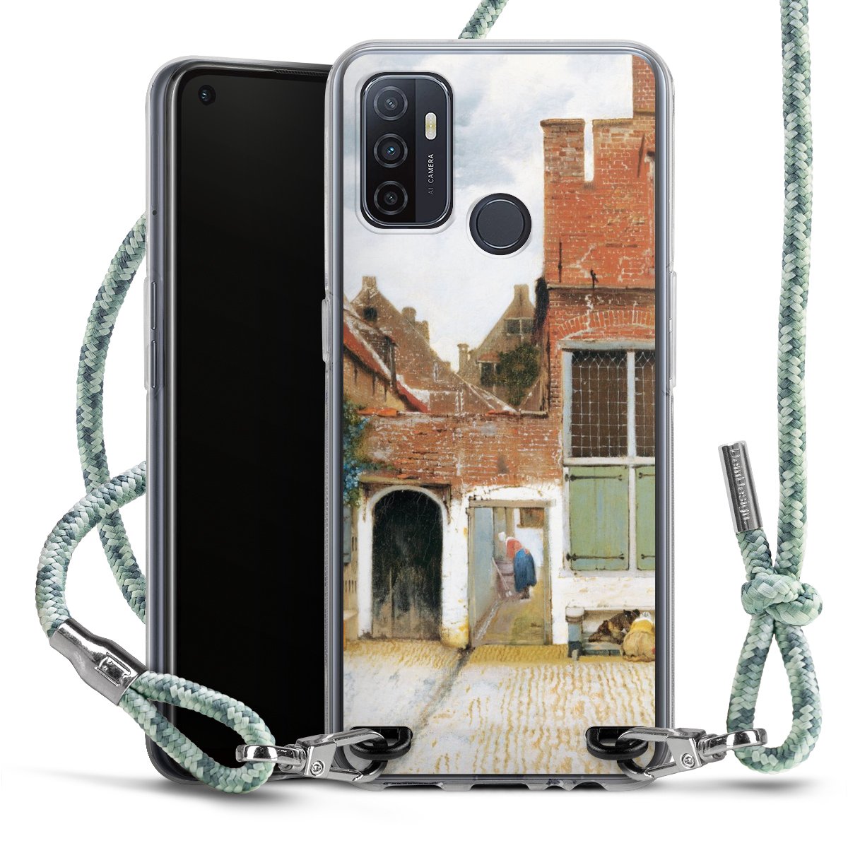 The flexible case is made from a highquality TPU material (thermoplastic Polyurethan). Thanks to its longlasting and break resistant characterisitcs, the case is flexible yet consistent in form and has a great grip and feel. The textile strap made from Polyester gives a chic yet casual accent allowing you to carry your phone like a bag or necklace - a practical gadget perfect for your next adventure. The textile strap is about 1.70 meters long and the length can easily be adjusted through the knots. Our Carry Case is available in Colourful, Mint-Camouflage, Very-Berry, Sahara-Sand and Sparkling-Neon. The ends of the textile strap are covered with metallic end caps to protect them against fraying.